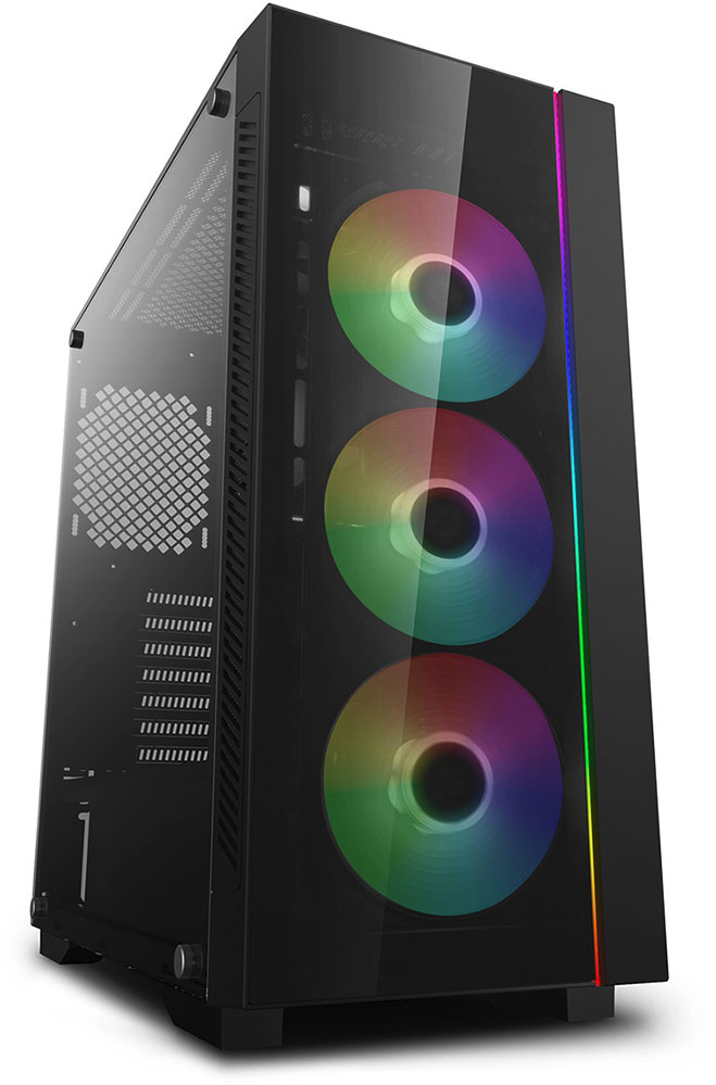 Корпус будет один из самых лучших – DeepColl MATREXX 55 V3 с тремя разноцветными вентиляторами в комплекте. У корпуса продуманное расположение внутренних устройств, а также передняя и боковая панели выполнены из закаленного стекла, так что можно будет сквозь них любоваться подсветкой комплектующих.