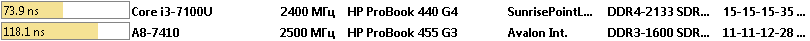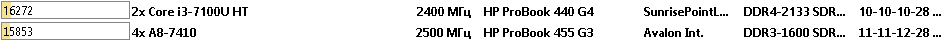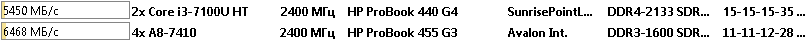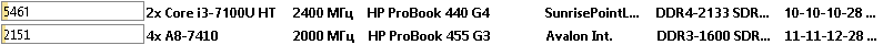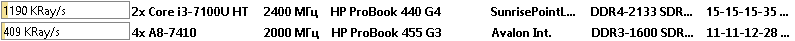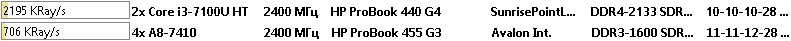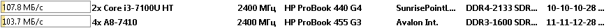 Что в итоге. Ноутбук HP ProBook 440 G4 с процессором Intel Core i3-7100U оказался быстрее во всех тестах, не смотря на наличие только двух вычислительных ядер. Только в тесте CPU AES процессор от AMD смог оторваться на 18%, но чаще всего AMD A8-7410 показывал отставание в 2 или 3 раза.