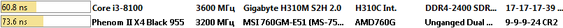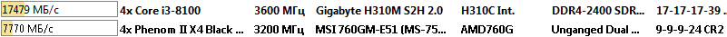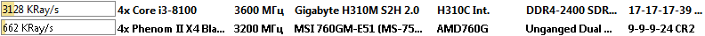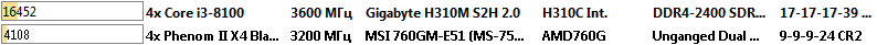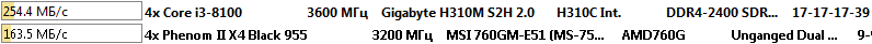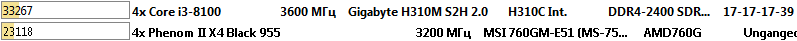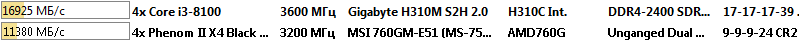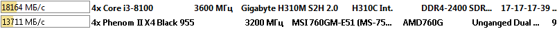 Здесь процессор Intel Core i3-8100 оказался быстрее процессора AMD Phenom II X4 955 Black Edition в полтора раза.