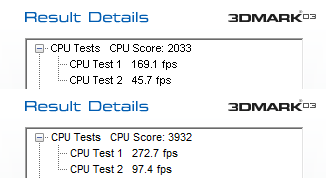 Пятнадцатый тест – 3DMark03 CPU tests