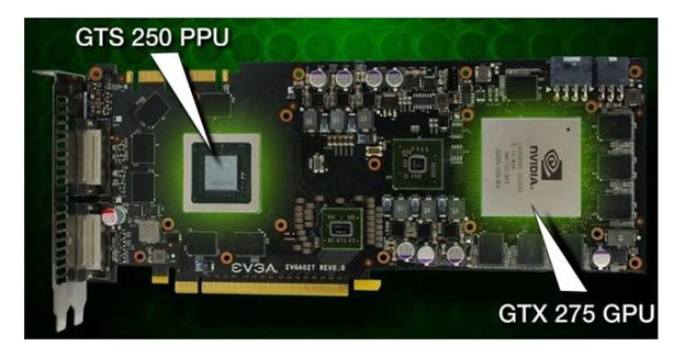 Это двухчиповая видеокарта, но чипы у нее были разные. GTX 275 и GTS 250. Старший чип использовался для графики, а второй, более слабый, должен был заниматься обсчетом физики PhysX. Поскольку игр с поддержкой данной технологии было не много, популярности эта карта не снискала.