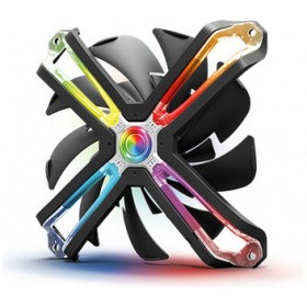 Этот корпусный вентилятор 140 мм имеет необычную форму. Корпус отсутствует, крепление производится через крестовину со встроенной RGB-подсветкой.