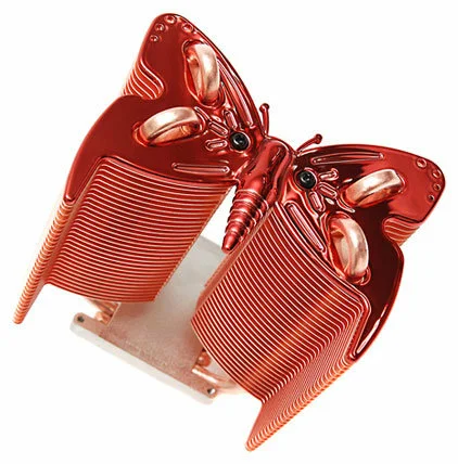 Этот радиатор предназначен для пассивного охлаждения процессора. Радиатор имеет форму бабочки и яркий цвет чистой меди.