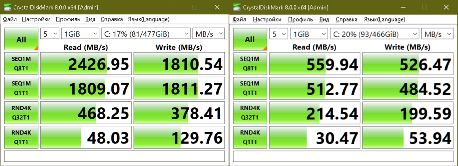 И в завершение тесты системного накопителя. Понятно, что M.2 накопитель будет быстрее, чем SATA SSD, но все таки нужно показать разницу. И разница значительная.