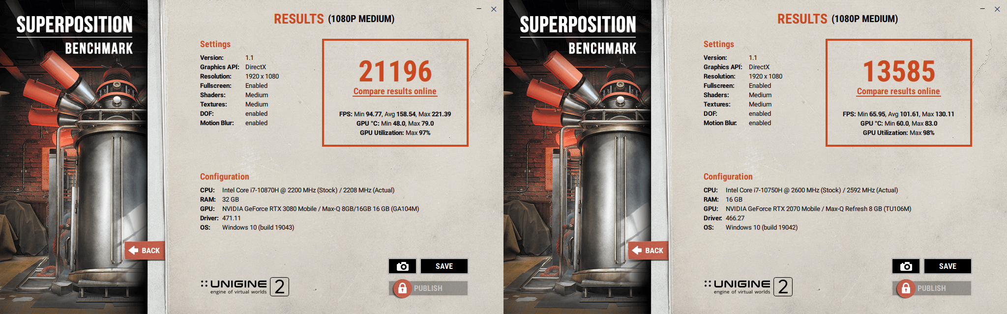 В тесте Superposition превосходство составило 56% как в итоговом счете, так и по среднему кадру. А по максимальному FPS преимущество составило 70%.