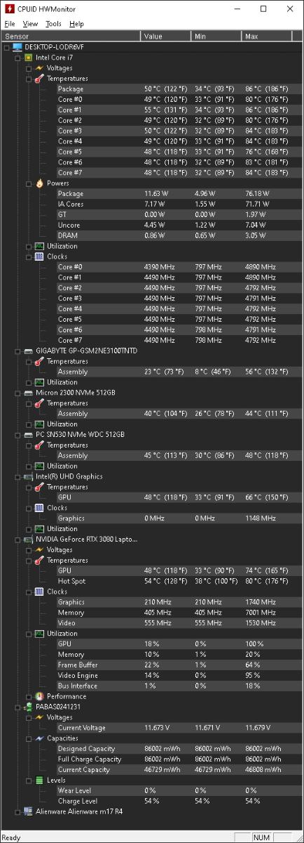 Тесты моего игрового ноутбука Alienware M17 R4 (i7-10870H + RTX 3080 16GB)