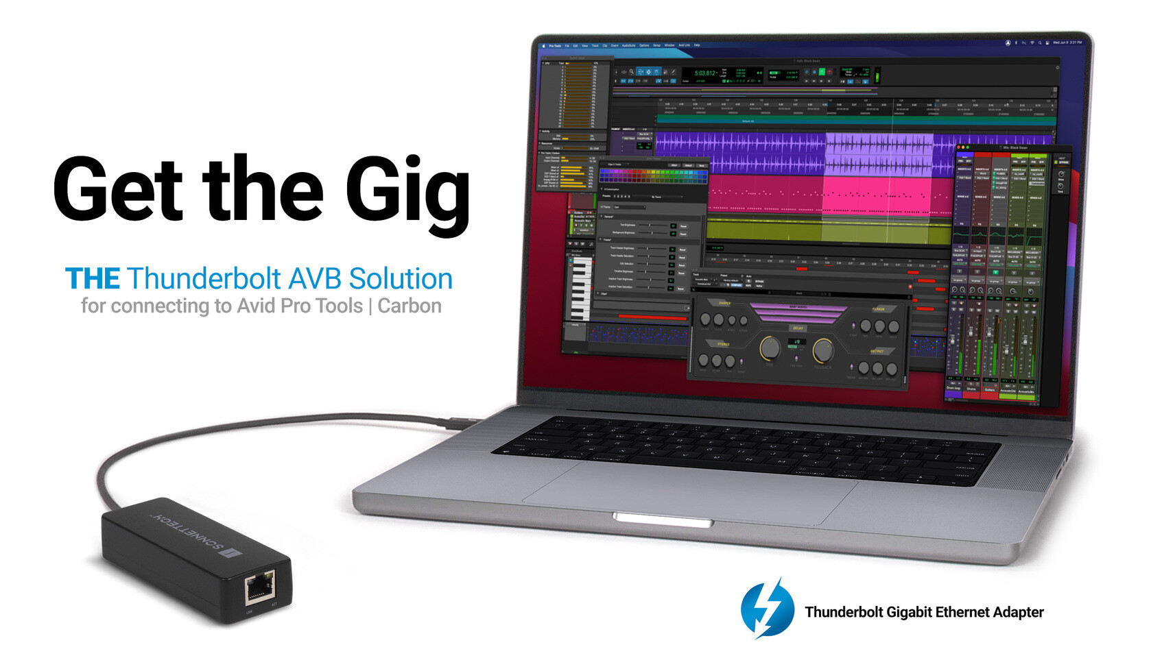 Компания Sonnet Technologies объявила о выпуске Sonnet Thunderbolt AVB Adapter для компьютеров Mac - компактного адаптера Gigabit Ethernet с питанием от шины и поддержкой сети AVB (Audio Video Bridging, она же IEEE 802.1) для компьютеров Apple Mac с портами Thunderbolt. Квалифицированный Avid адаптер Sonnet был разработан для использования с профессиональным аудиоинтерфейсом Avid Pro Tools | Carbon для производства музыки, позволяя компьютерам MacBook Air и MacBook Pro, не имеющим встроенных портов Gigabit Ethernet, напрямую подключаться к интерфейсу Avid через кабель Cat 6.