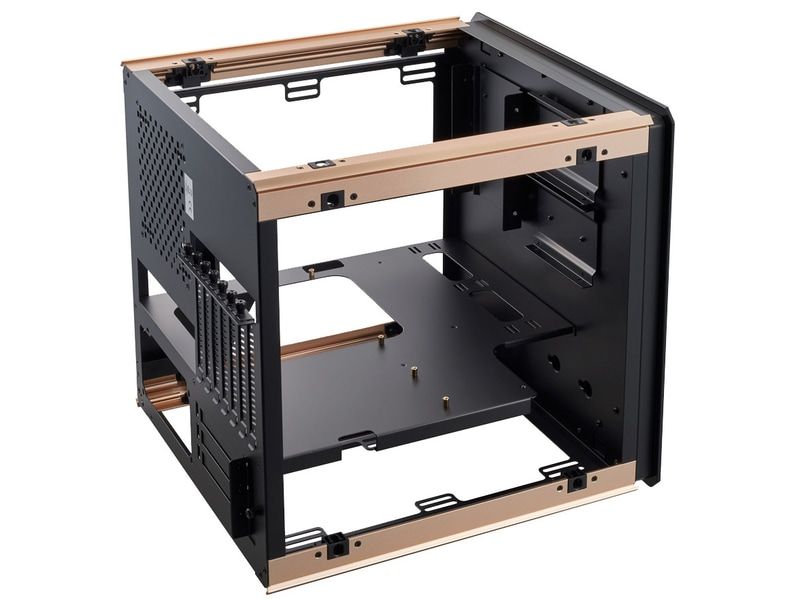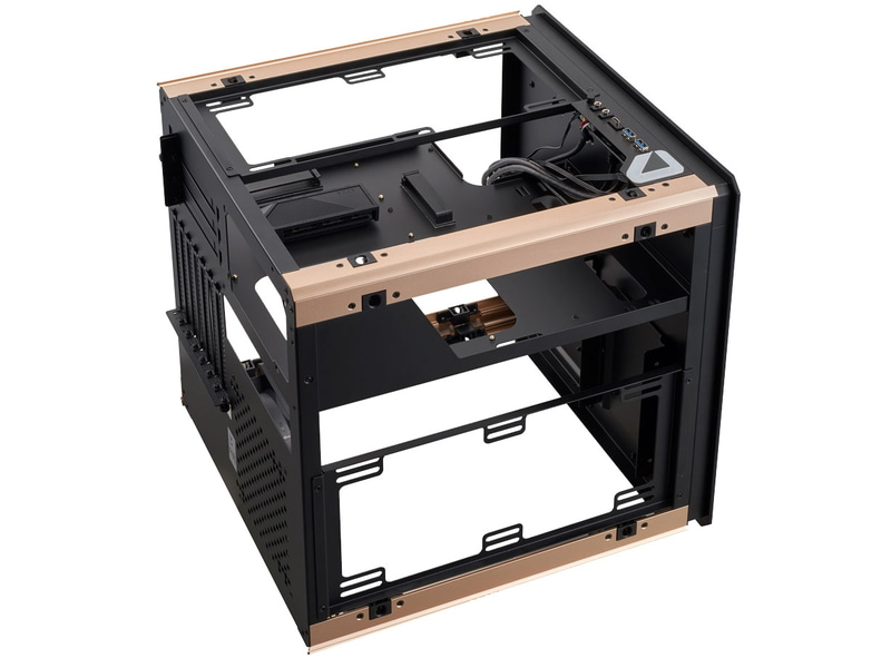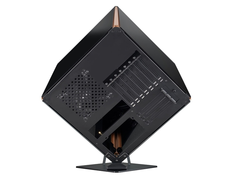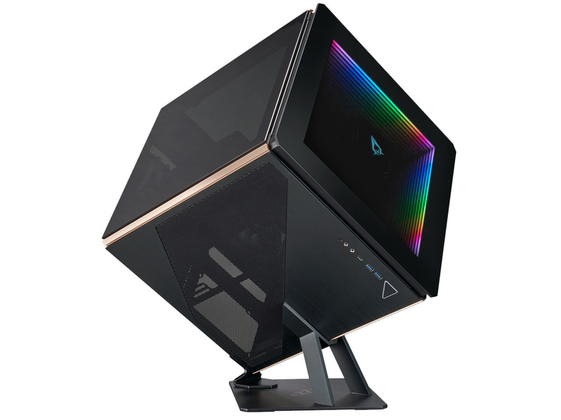 Кубический корпус для ПК форм-фактора ATX поставляется с пьедесталом, на котором основной блок может быть установлен под углом. Закаленное стекло используется на боковых и передней панелей, которые являются верхними двумя сторонами, когда устройство установлено под углом. Нижние две стороны изготовлены из алюминия. Передняя панель имеет ламинированный зеркальный дизайн со светодиодной подсветкой со всех четырех сторон.