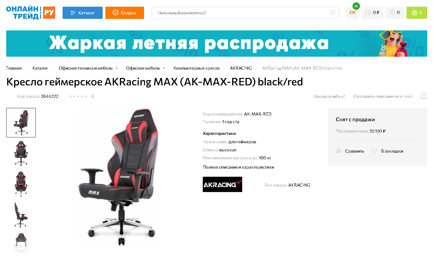 Отличным вариантом стало кресло AKRacing MAX. Кресло было куплено в Онлайнтрейд, ибо оно там стоило на 2000 р дешевле, чем в ДНС, плюс магазин постоянно раздает немного бонусов по праздникам и их хватило на бесплатную доставку. Сейчас его там уже нет в продаже, наверно я купил последнее, но оно есть в других магазинах в больших количествах.