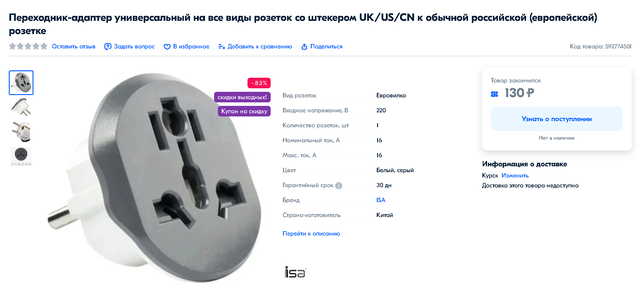 У зарядки моего Moto вилка американского стандарта, и несмотря на то, что продавец заботливо положил переходник на евровилку в комплект, я сразу заказал такой адаптер ISA. Вообще таких адаптеров везде навалом, можно было выбрать любой.