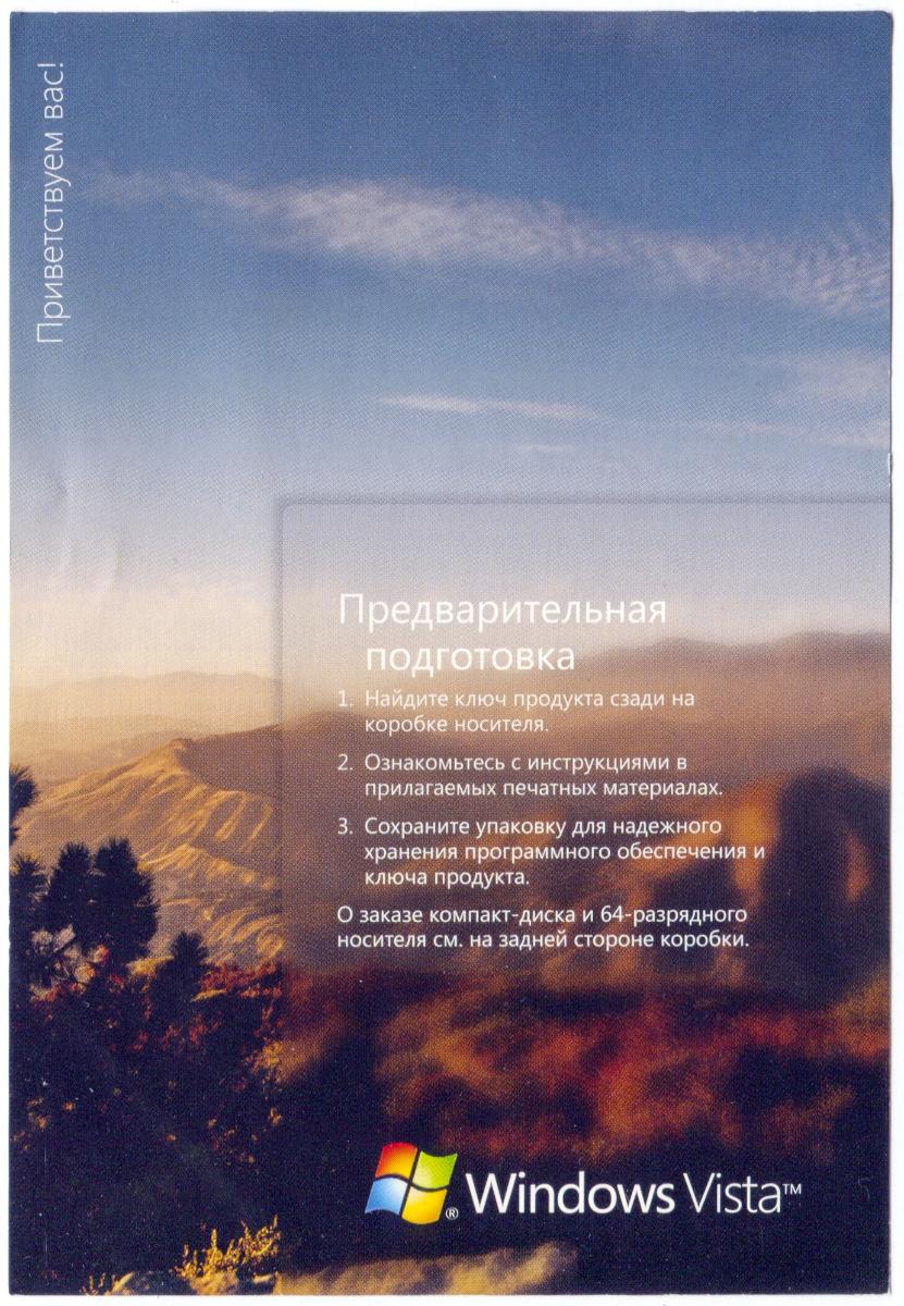 На передней стороне лотка закреплен диск с 32-разрядной версией системы. Во всех коробках Vista лежит только один диск с 32-разрядной системой, кроме Ultimate – там положили 2 диска с 32 и 64-разрядными системами. 64-разрядную версию Windows Vista Home Premium предлагается скачать с сайта, ключ от 32-разрядной подойдет.