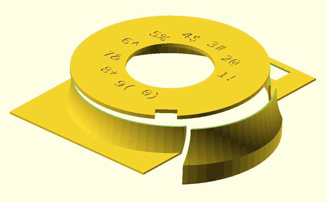 Было немного сложнее получить надписи там, где он хотел, но в конце концов он справился, используя функцию экспорта SVG в OpenSCAD и распечатывая циферблаты, пока не получил угол, который считал разумным.