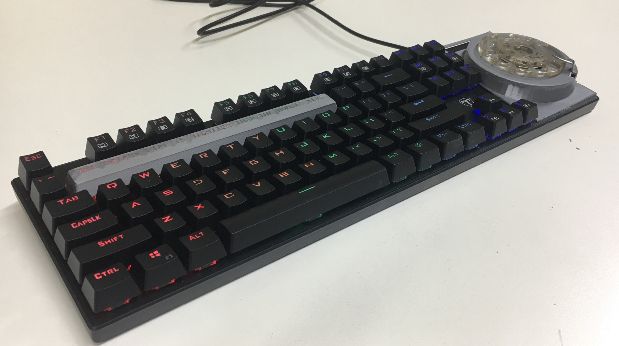 Хотя в таких проектах, как этот, легко обойтись косметической отделкой, он решил, что необходимо, чтобы циферблат действительно работал для ввода цифр - тем более, что Squidgeefish планировал удалить цифровой ряд клавиш, тем самым заставив юзера использовать поворотный циферблат для ввода цифр или символов.