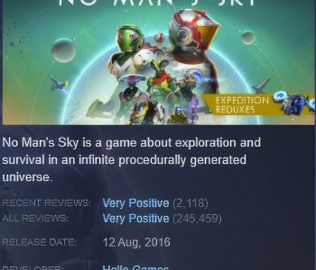 После запуска в 2016 году, игра No Man's Sky наконец-то достигла положительного рейтинга в Steam