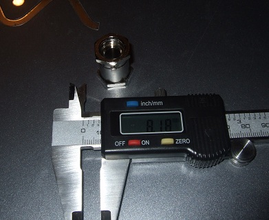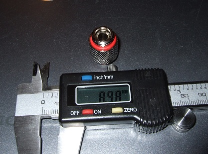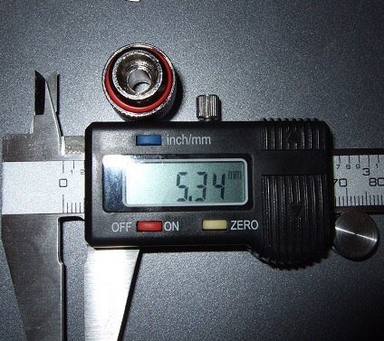 Переходник с возможностью поворота. Основное разочарование. На фотках в магазине все выглядит замечательно и лишь вторая фотка может заронить определённые сомнения. К сожалению на деле все гораздо хуже, на 1 фотке диаметр который должны бы были выдержать Фобиевцы, замеренный с внутренней стороны резьбы. Но в качестве возможности сэкономить на метале и пользователях инженеры Фобии всю начинку поворотного механизма внесли внутрь. Закономерное следствие - внутренний диаметр этой «затычки» 5.35 мм.