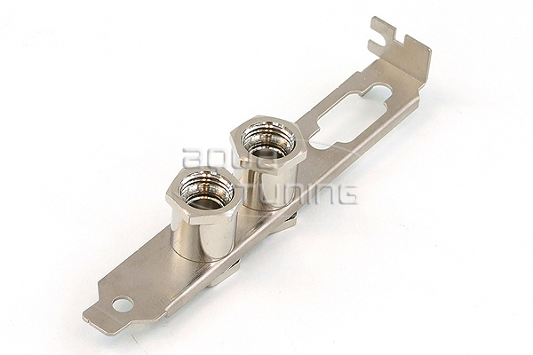 А именно заглушка c 2xG1/4" на слот расширения для тех корпусов в которых нет дырок для СВО (как например мне, со старым но замечательным корпусом Чифтек БА) или ими по каким-то причинам нет желания пользоваться. В дырки сделаные в этой заглушки для слота отлично и с запасом влезает G1/4”, казалось бы чего сложного 2 переходника, побольше уплотнителей, фиксатор резьбы и вот вещь которая не мешает потоку и не протекает. Но Куланс пошел своим путем и вставил что-то похоже на полуфабрикат для быстрого сцепления. Итог не радует, в том месте где у обладателей дырок в корпусе диаметр равен диаметру шланга Куланс сужает поток до 8.2 мм.