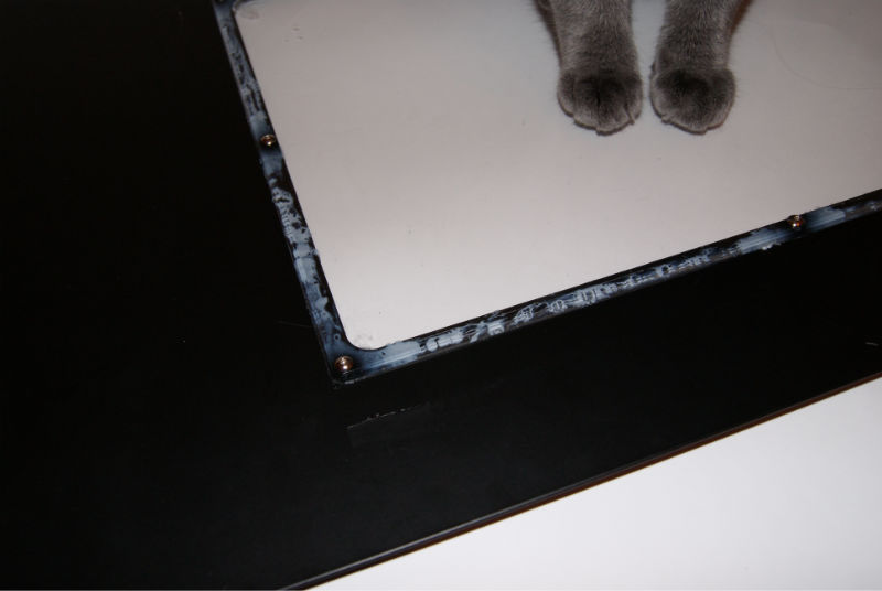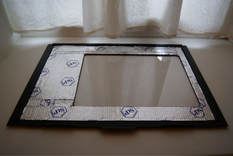 В первую очередь было решено загерметизировать окно лицевой двери корпуса с помощью бесцветного герметика