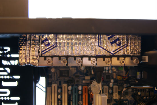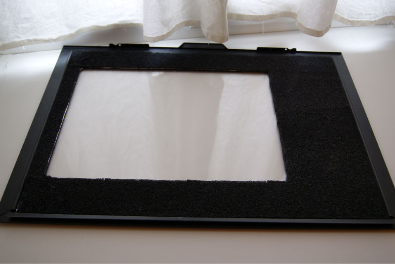Обклеиваем заднюю стенку, где располагается блок питания и прилегающие пространства.