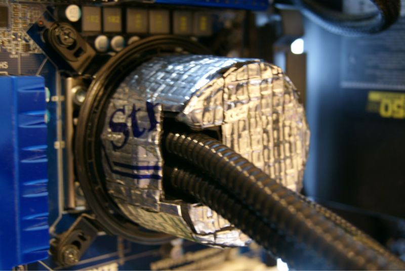 Так как помпа от CWCH50 немного жужжит, я решил и ее покрыть материалом, чтобы избавить себя от разных посторонних звуков.
