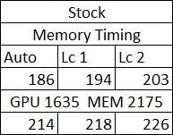 Наиболее производительным режимом оказался latency 2, и он будет использован для оценки производительности в игровых бенчмарках. В игровых бенчмарках видеокарта будет работать на таких частотах GPU 1635 МГц и MEM 2175 МГц.