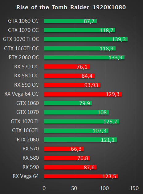 Вместо подведения итогов сравним результаты с материалом Обзор и тестирование видеокарты NVIDIA GeForce GTX 1660 Ti. Драйвера Adrenalin 2019 Edition 19.2.2 настройки те же что в обзоре GTX 1660 Ti.