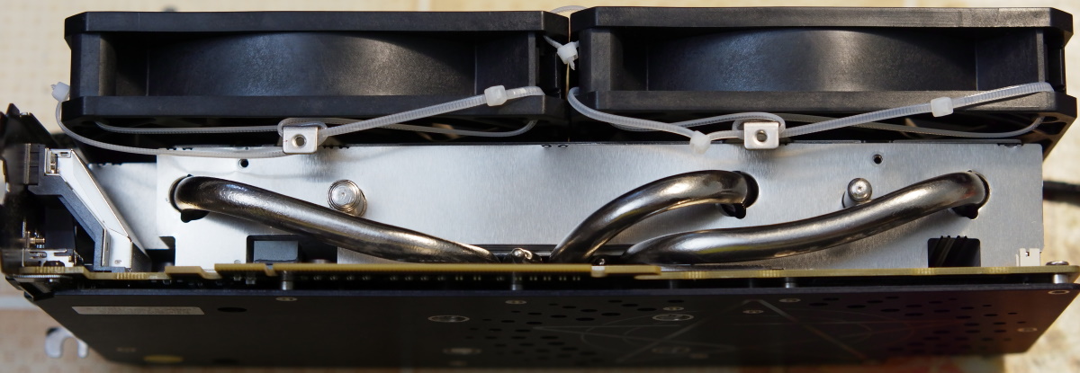 В этом тесте уже оба вентилятора справились со своей задачей. Разница на GPU 9 °C и на VRM 14 °C.