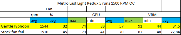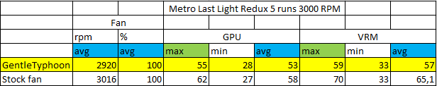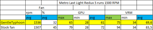 В Metro Last Light Redux оба типа вентиляторов по градусам уравнялись, более подробно это видно на графике и в таблице.