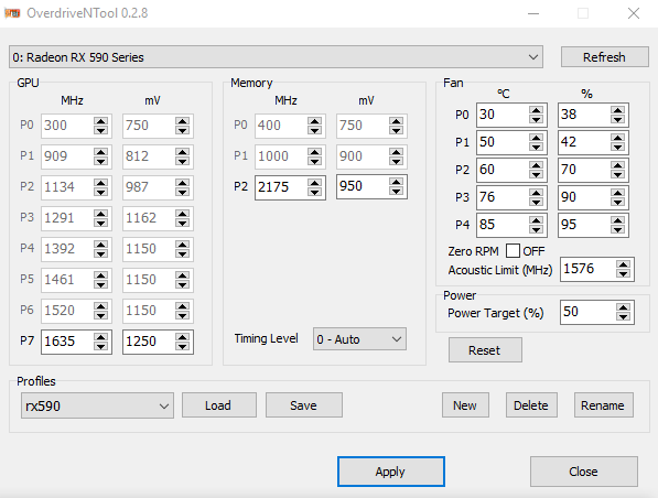 Итог: видно, что радиатор видеокарты AMD Radeon RX 590 Red Devil имеет запас по охлаждению, и вентиляторы Gentle Typhoon D1225C12 GT3000-P это доказали. Использование 120 мм вентиляторов позволяет уменьшить уровень шума на стоковых частотах примерно при тех же температурах, а в разгоне добиться на меньших оборотах лучшего результата, чем на стоковых. Тест в играх со родными вентиляторами можно увидеть по этой ссылке Тест AMD Radeon RX 590 Red Devil с двумя процессорами AMD Ryzen Threadripper 1950X и Intel i7-6400t