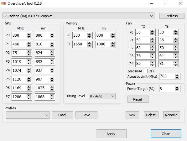 Стандартный Power Limit видеокарты составляет 85 Вт, ниже на скриншотах можете увидеть дополнительные параметры видеокарты.