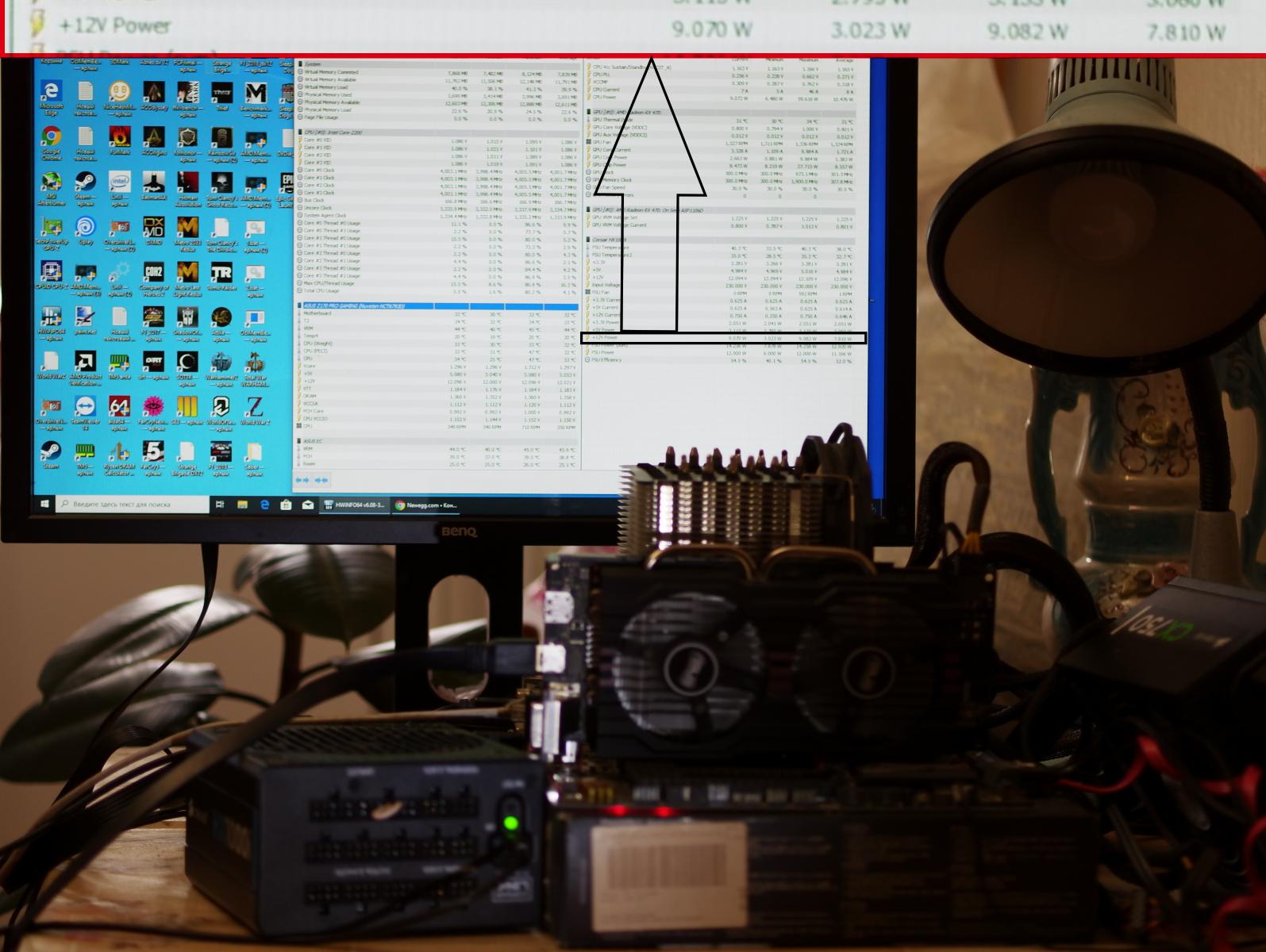 Надеюсь, я развеял миф, что не стоит верить софтому мониторингу, он никоим образом не показывает энергопотребление в целом, и не стоит не верить ресурсам в интернете, которые отдельно замеряют энергопотребление видеокарты. В тесте FurMark со сглаживанием AAx0 относительно лимита потребления видеокарты 85 Вт полное энергопотребление видеокарты больше 40% и составило 125 Вт. Цифры в обзоре не являются абсолютно точными, блок питания HX1000i без нагрузки по 12 В потребляет около 9 Вт максимум или 7,8 Вт в среднем без нагрузки в течение часа на скриншоте ниже, также не учитывается потребление по другим линиям от Pci Express. Линии питания Pci Express от +12 В отрезаны в самом riser и запитаны от блока питания HX1000i.