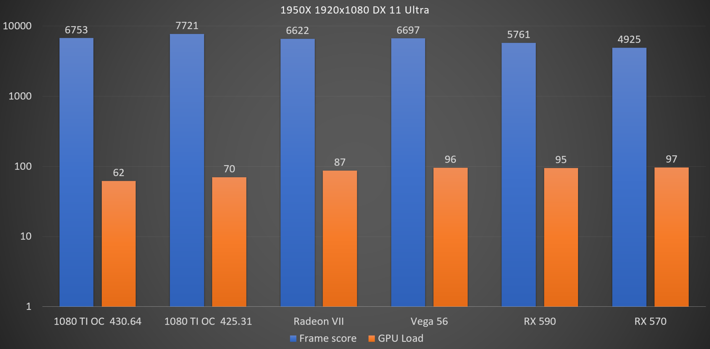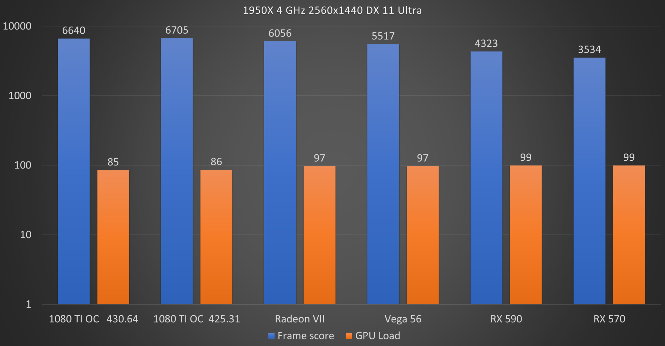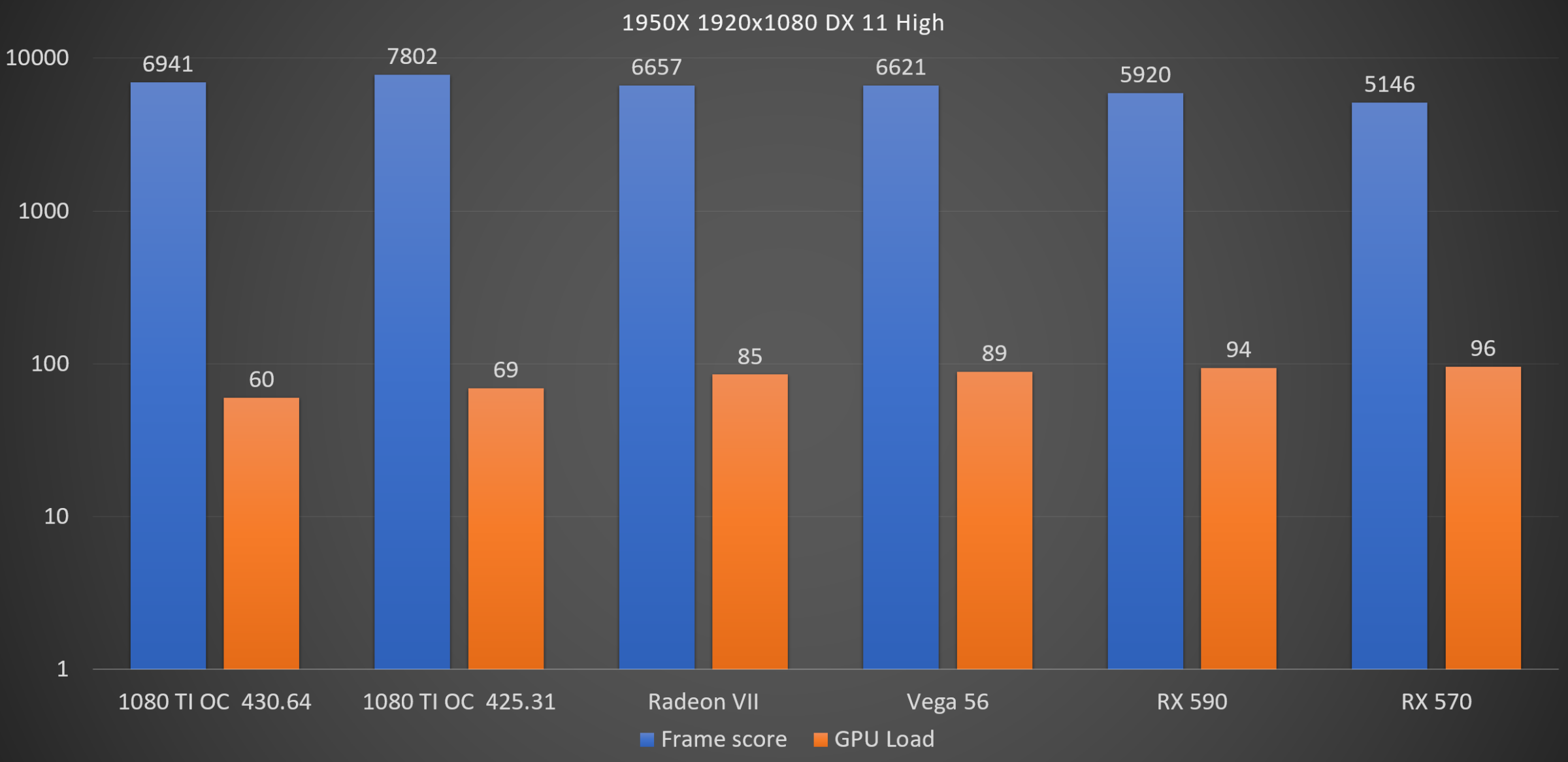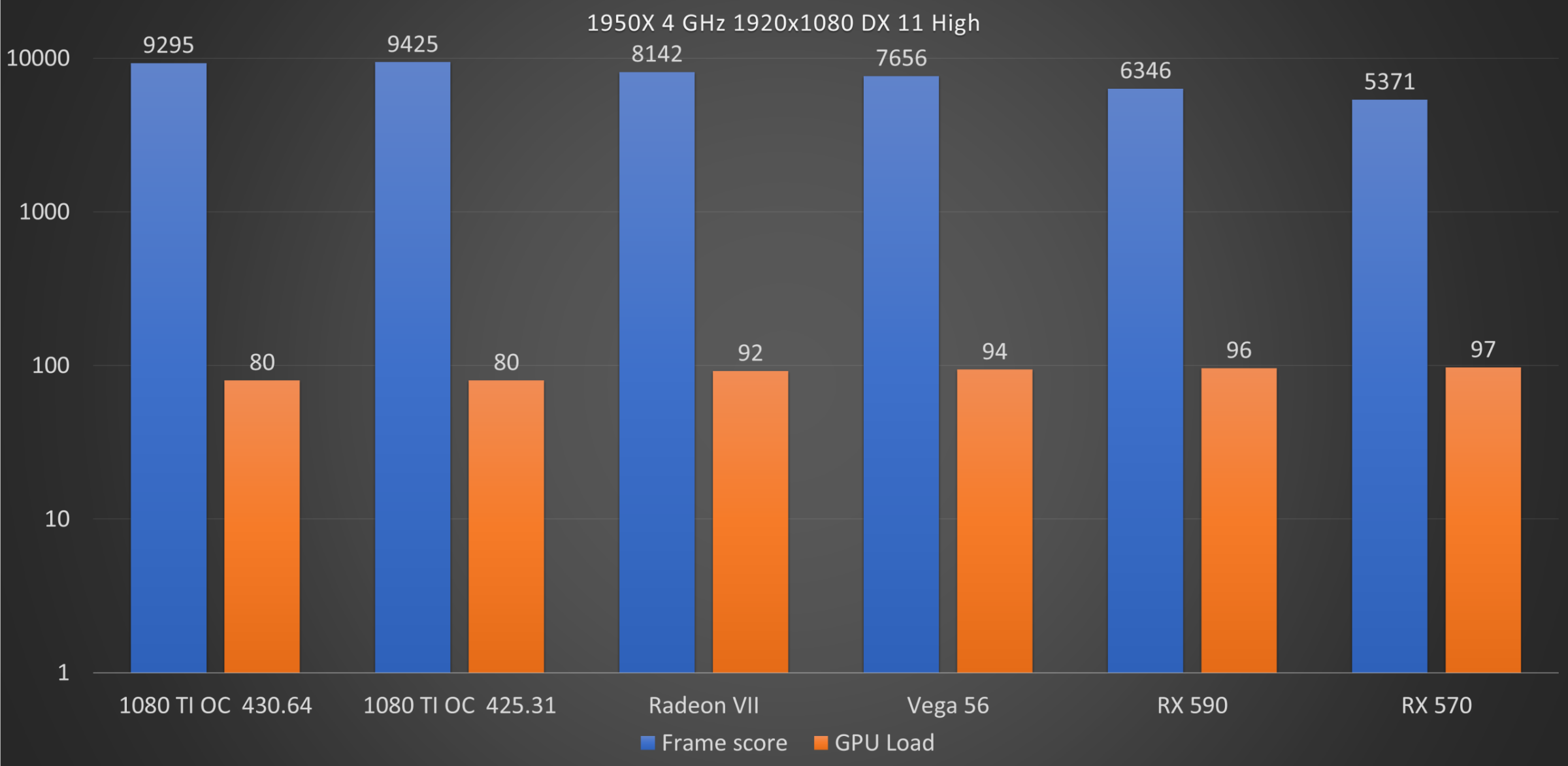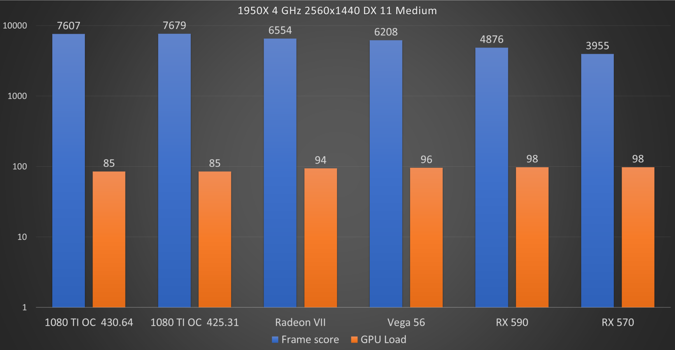 На момент тестирования вышедший драйвер 430.64 поднял производительность в Vulkan, но снизил производительность в DX 11 в FHD. Nvidia оказалась более процессорозависима, снижение настройки графики, приводит к тому что RX 570 начинает дышать в спину 1080 Ti. В DX 11 лидирует видеокарта 1080 Ti, в Vulkan AMD.