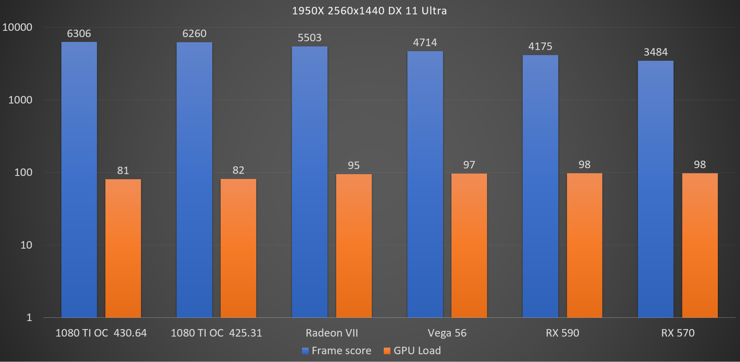 Тестирование видеокарт было произведено в апреле 2019 года. Данные 0,1% и 1% брались из MSI Afterburner для этого использовался режим «Бенчмарк» с назначением кнопок «Начать запись» и «Завершить запись», остальные значения из игрового бенчмарка.