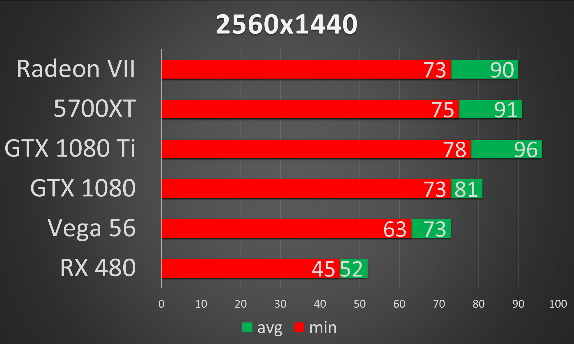 Измерения проводились с помощью MSI Afterburner 4.6.2 в режиме бенчмарк для видео теста. Тест в игре проводился в бесплатные выходные, использовался встроенный бенчмарк и использованы результаты в графиках. Для видеокарты RX 480 использовался BIOS 165 Вт, а для Vega 56 в разгоне использовался BIOS от Vega 64 220 Вт. Все видеокарты тестировались на заводских частотах и в разгоне.