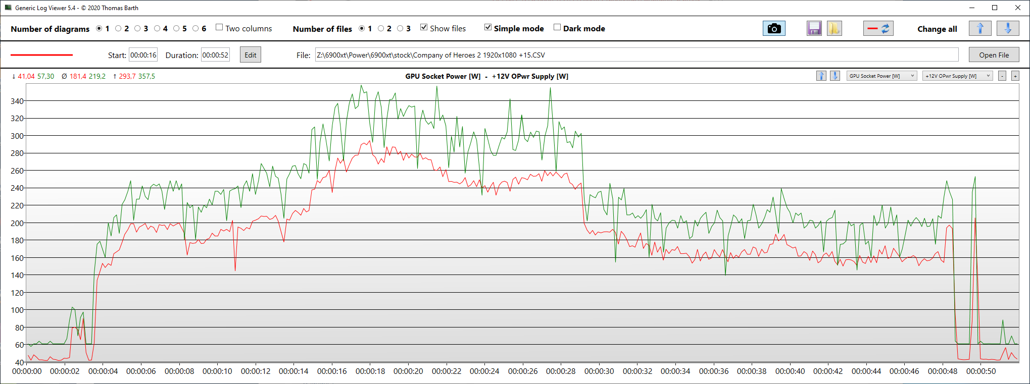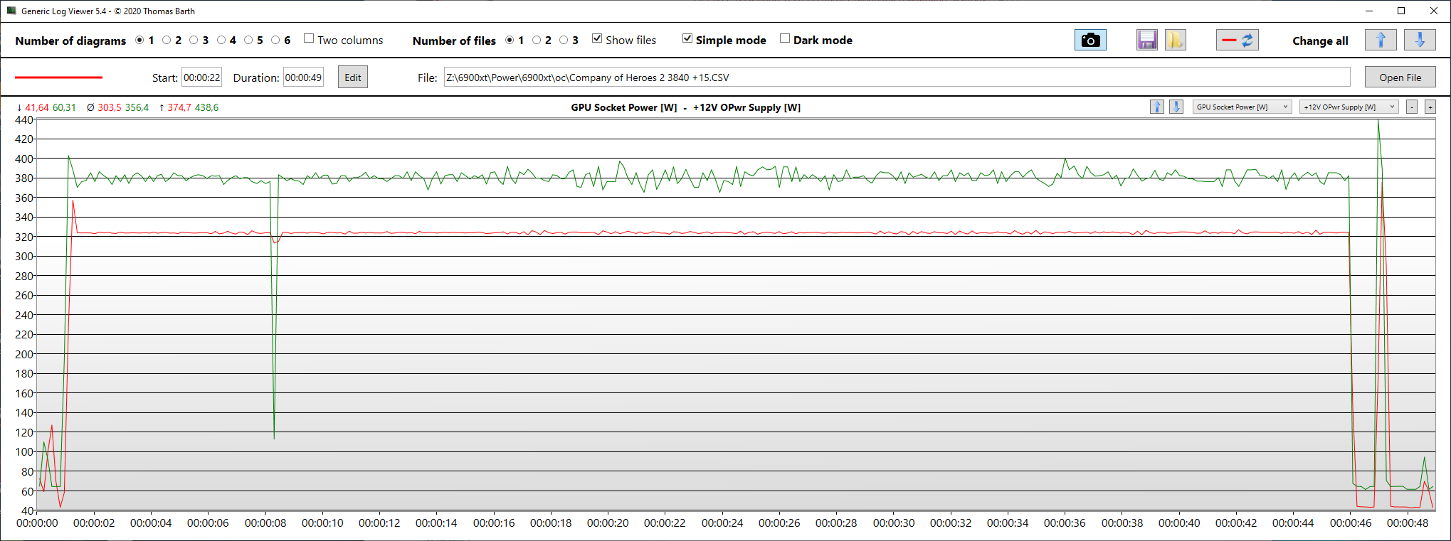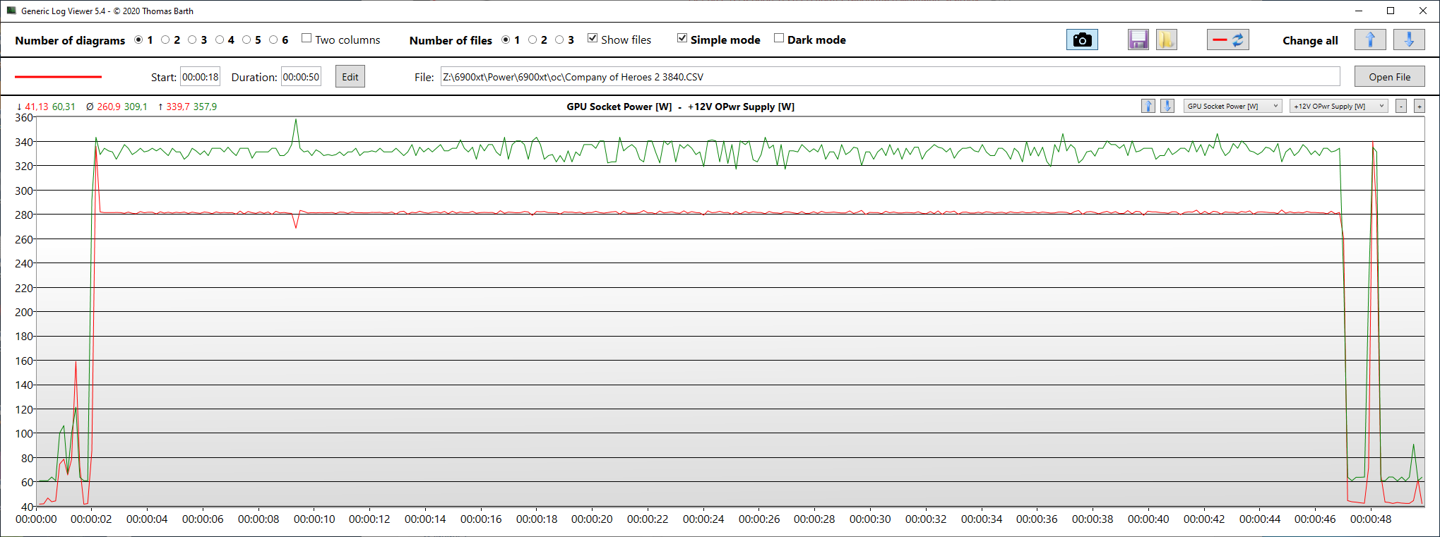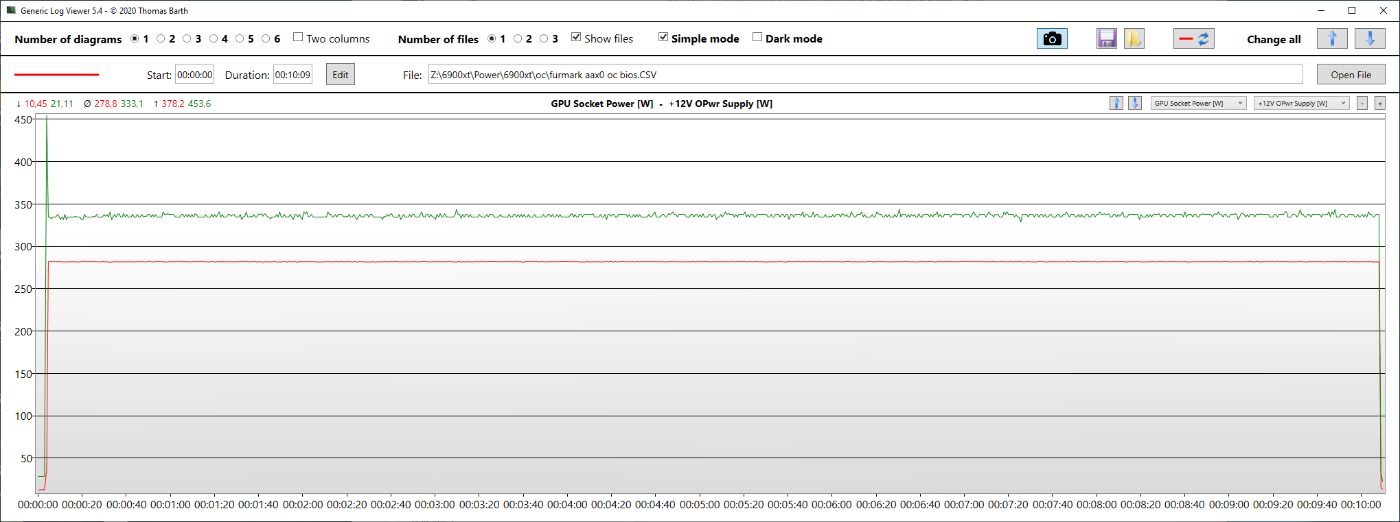 GPU Socket Power [W] – энергопотребление GPU из Hwinfo64 красная линия на графике.