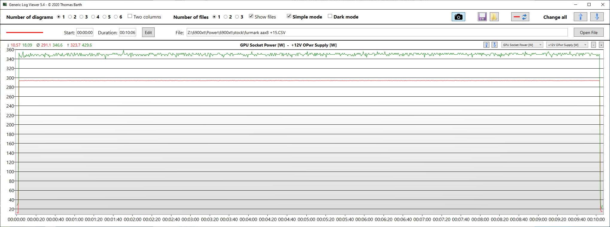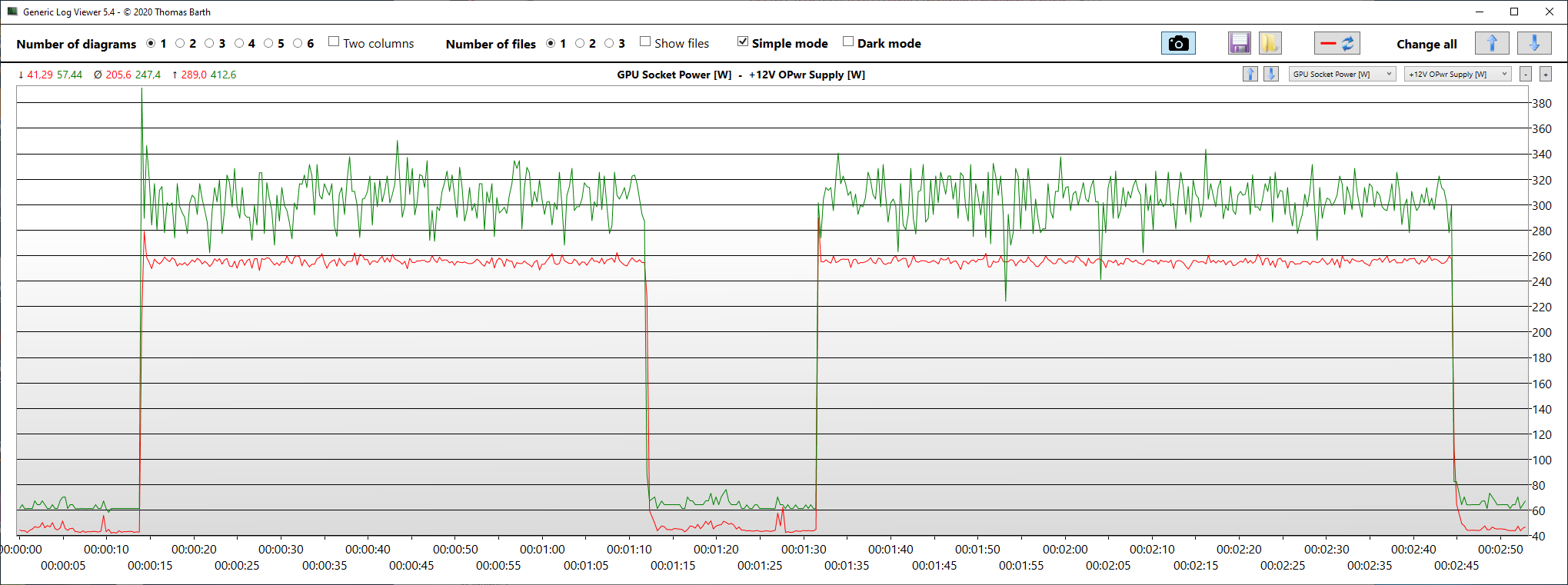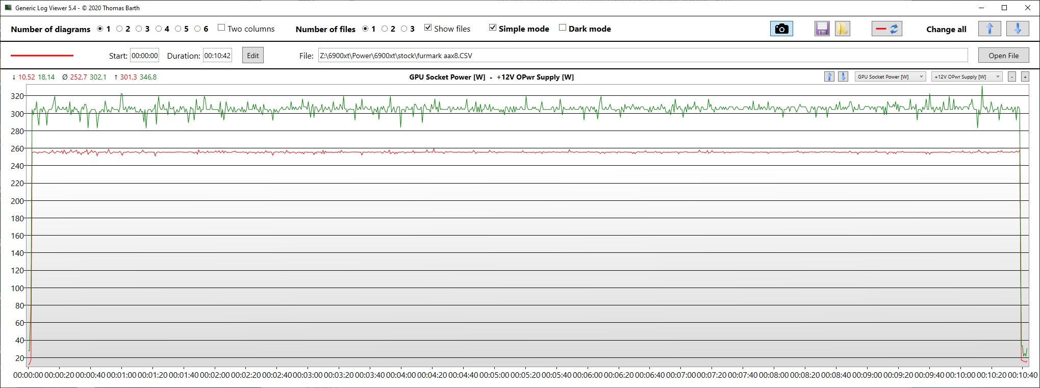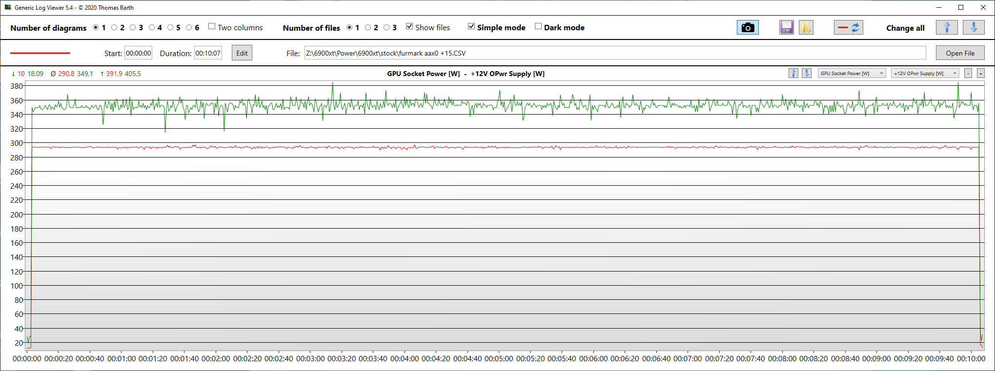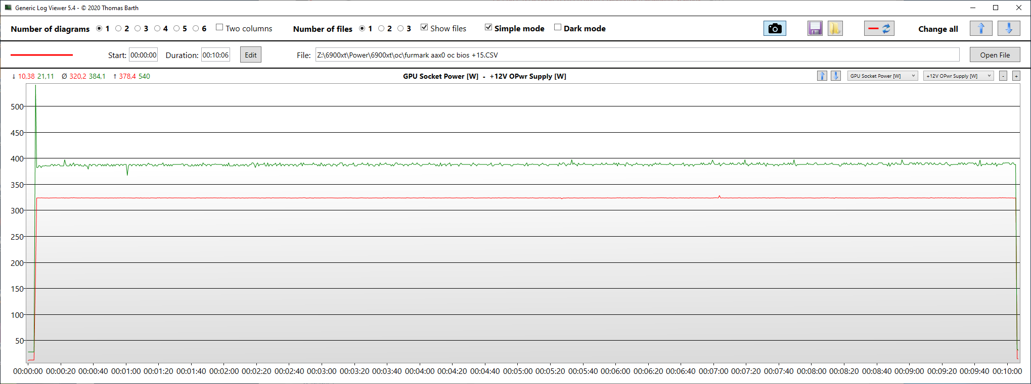GPU Socket Power [W] – энергопотребление GPU из Hwinfo64 красная линия на графике.