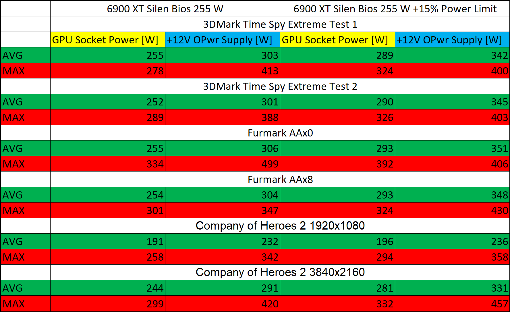 Silent Bios 255 Вт показывает энергопотребление референсной 6900 XT. Разница между софтовым мониторингом и полным энергопотреблением достигает практически 70 Вт. Все логи HWiNFO будут выложены позже в этой теме Всё о AMD Radeon RX 6800 | RX 6800XT | RX 6900XT - Navi 21 (XL, XT, XTX) 7nm RDNA2. прямая ссылка логи HWiNFO https://forums.overclockers.ru/download/file.php?id=216018.