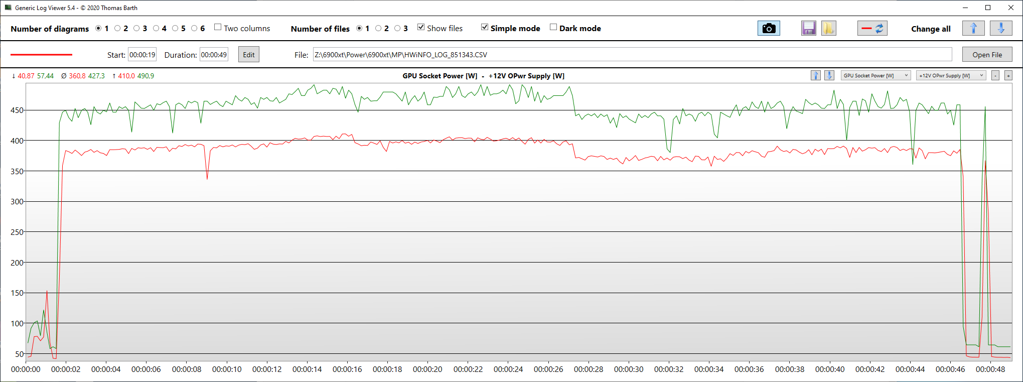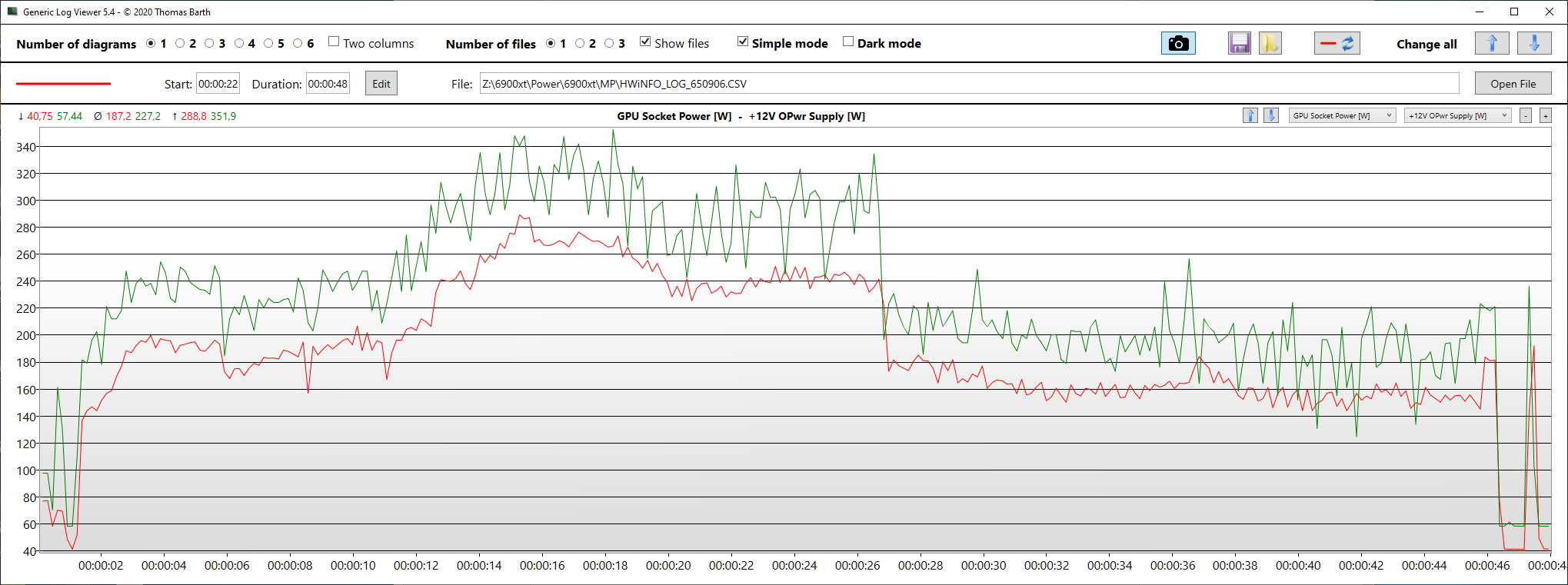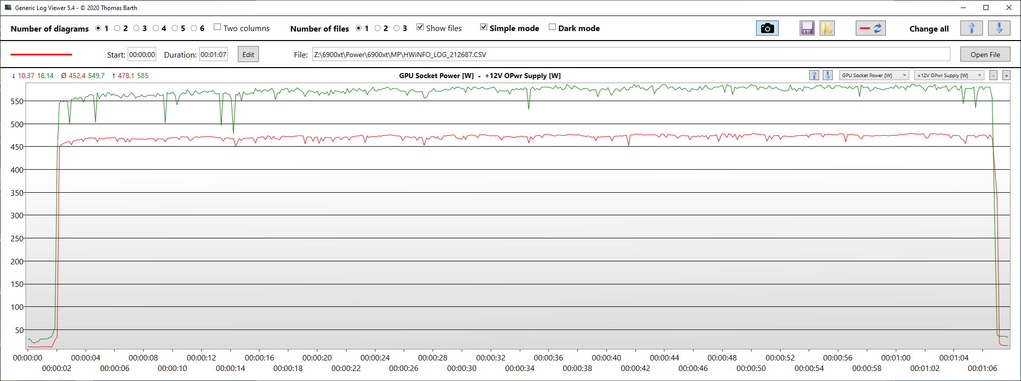 GPU Socket Power [W] – энергопотребление GPU из Hwinfo64 красная линия на графике.