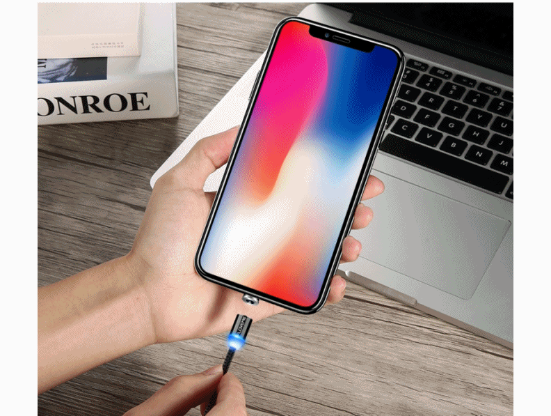 Самый востребованный аксессуар - это кабель для зарядки. Сегодня существуют тысячи различных вариантов, и сейчас, вы видите довольно интересный и необычный. Особенность в том, что данный кабель, состоит из кабеля с магнитным штекером и коннектором. Можно также заказать с микро USB, Lightning или Thunderbolt. В общем, коннектор вставляется в разъем смартфона 1 раз, и для зарядки нужно просто поднести штекер к коннектору - произойдет присоединение. Об успешном соединении оповестит световой индикатор. Переходник держится в разъеме очень плотно. Нет необходимости каждый раз вытаскивать его, тем самым изнашивая разъем. Да и вообще это удобно и просто. Также, он выполняет роль своеобразной заглушки и защищает разъем от попадания в него мелкого мусора, пыли и воды. И еще одна особенность кабеля в его нейлоновой оплетке, которая предотвращает его перегибание и запутывание.