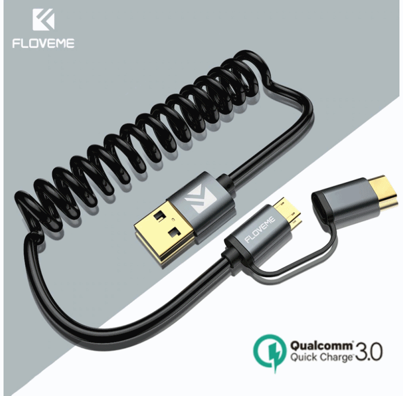 Если у вас в использовании несколько телефонов, а особенно с разными разъемами для зарядки, то предлагаю присмотреться к такому варианту кабеля. Один конец имеет USB разъем, а второй микро USB и дополнительно отсоединяющийся коннектор с разъемом TYPE-C, который установлен на откидном хвостике. Довольно неплохая идея, чтобы и не потерять, и одним кабелем заряжать смартфоны с разными разъемами.