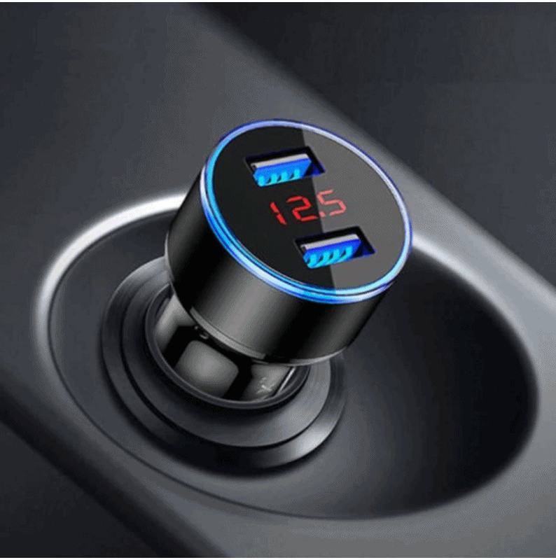 Компактное, я бы даже сказал миниатюрное, автомобильное зарядное устройство, которое устанавливается в разъем прикуривателя машины. Благодаря таким размерам эстетично смотрится в салоне автомобиля и не мешает. Выходное напряжение 3,1 Ампера. Имеет два USB порта и световой индикатор с цифровым дисплеем, который позволит обнаружить устройство в темноте.