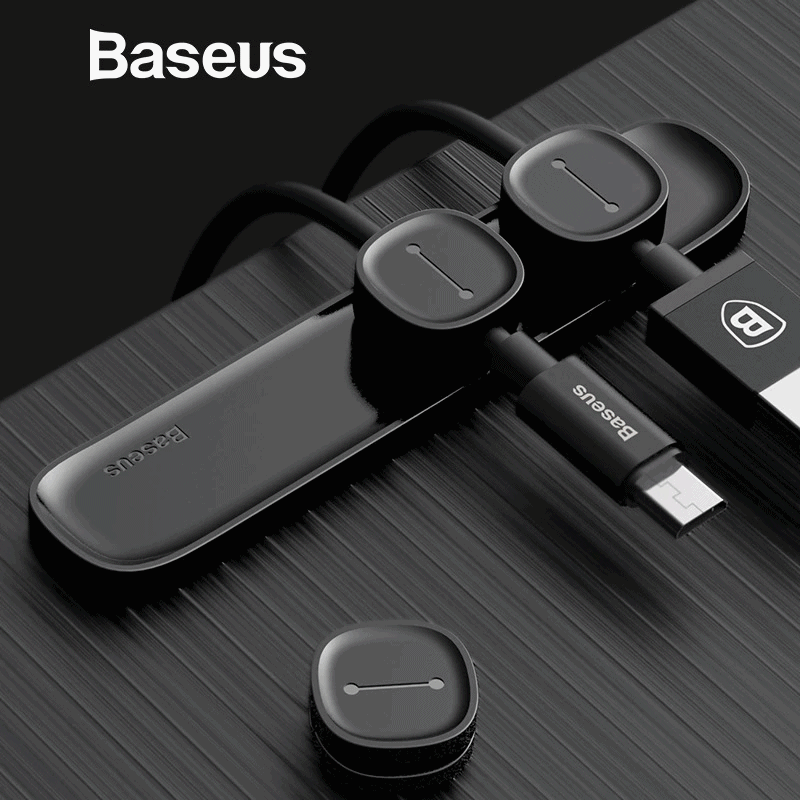 Магнитный органайзер для проводов. Ни что так не раздражает, как сползающий по столу провод от зарядки и потом путающийся на полу под ногами. Для решения этой проблемы есть специальный магнитный держатель. Он представляет собой небольшую пластину с магнитом внутри, которая крепится при помощи 3 М скотча. На нее сразу могут подцепляться 3 кабеля. На провод надевается маленький колпачок с магнитом обратной полярности. В результате вы просто подносите провод к пластине, и он примагничивается. Очень просто и удобно.