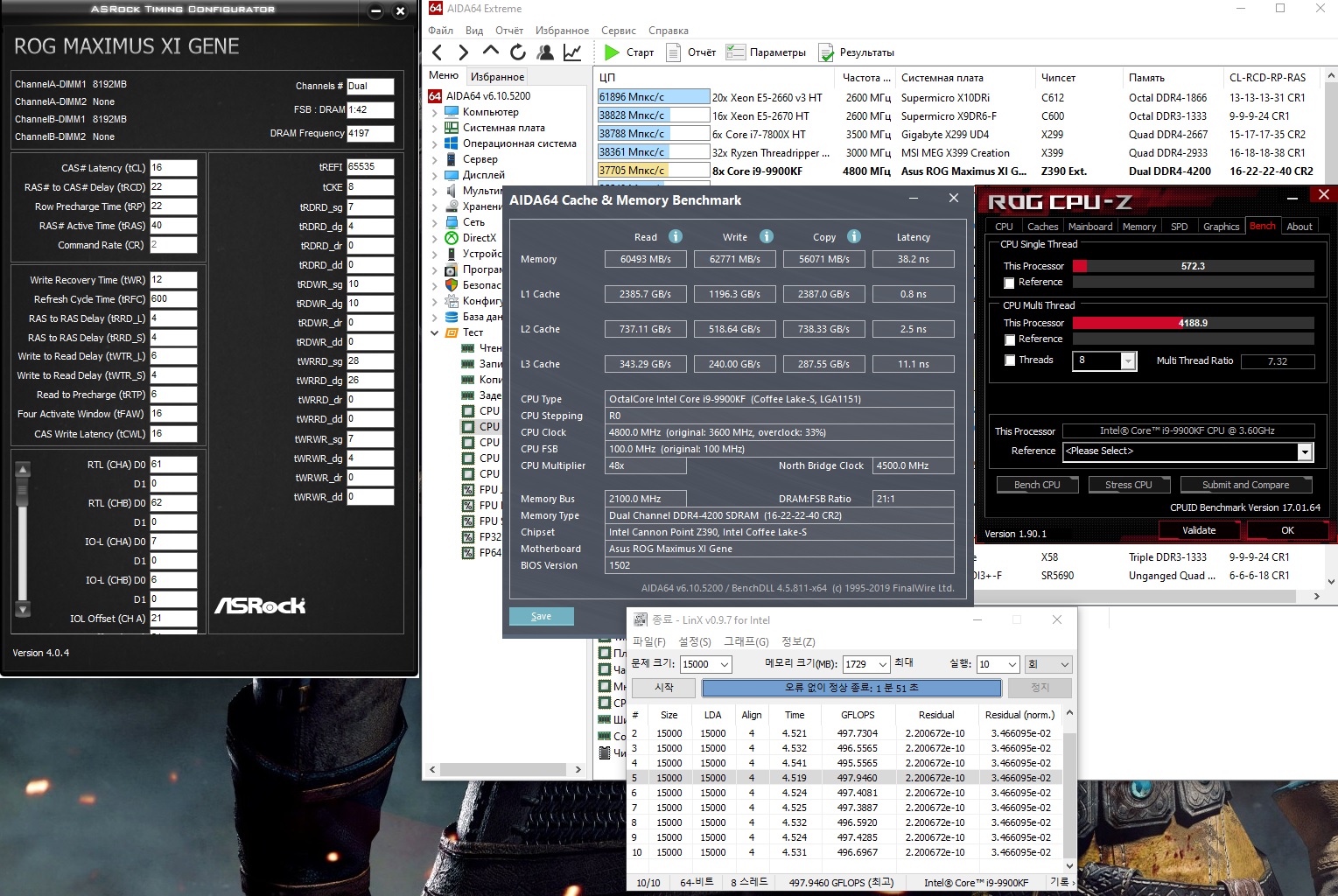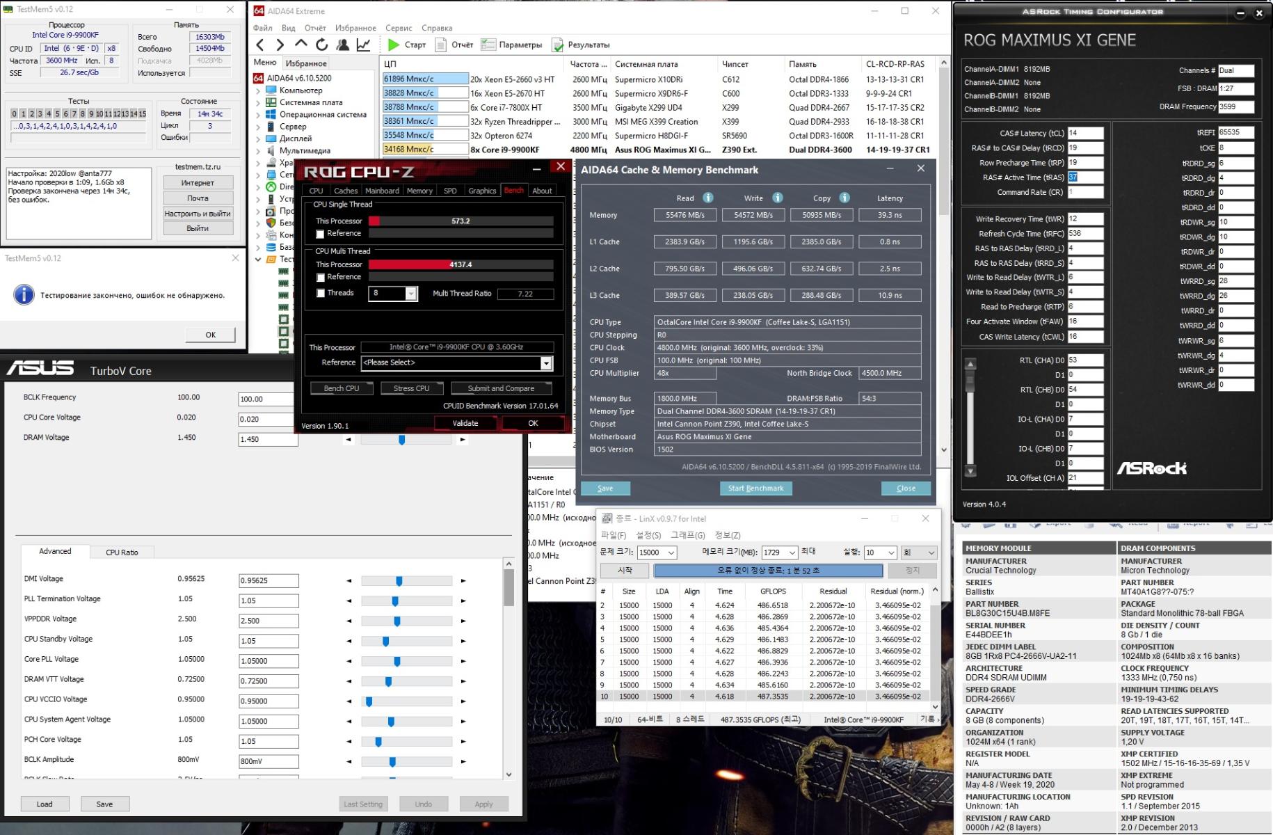 2) Процессор 9900KF (есть теория, что контроллер памяти в топовых процессорах линейки (i9) в основной своей массе лучше чем у более бюджетных представителей (i7/i5)