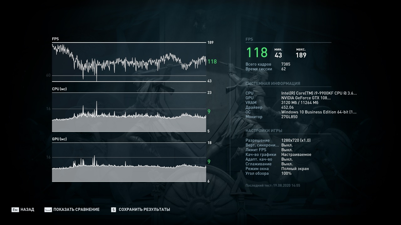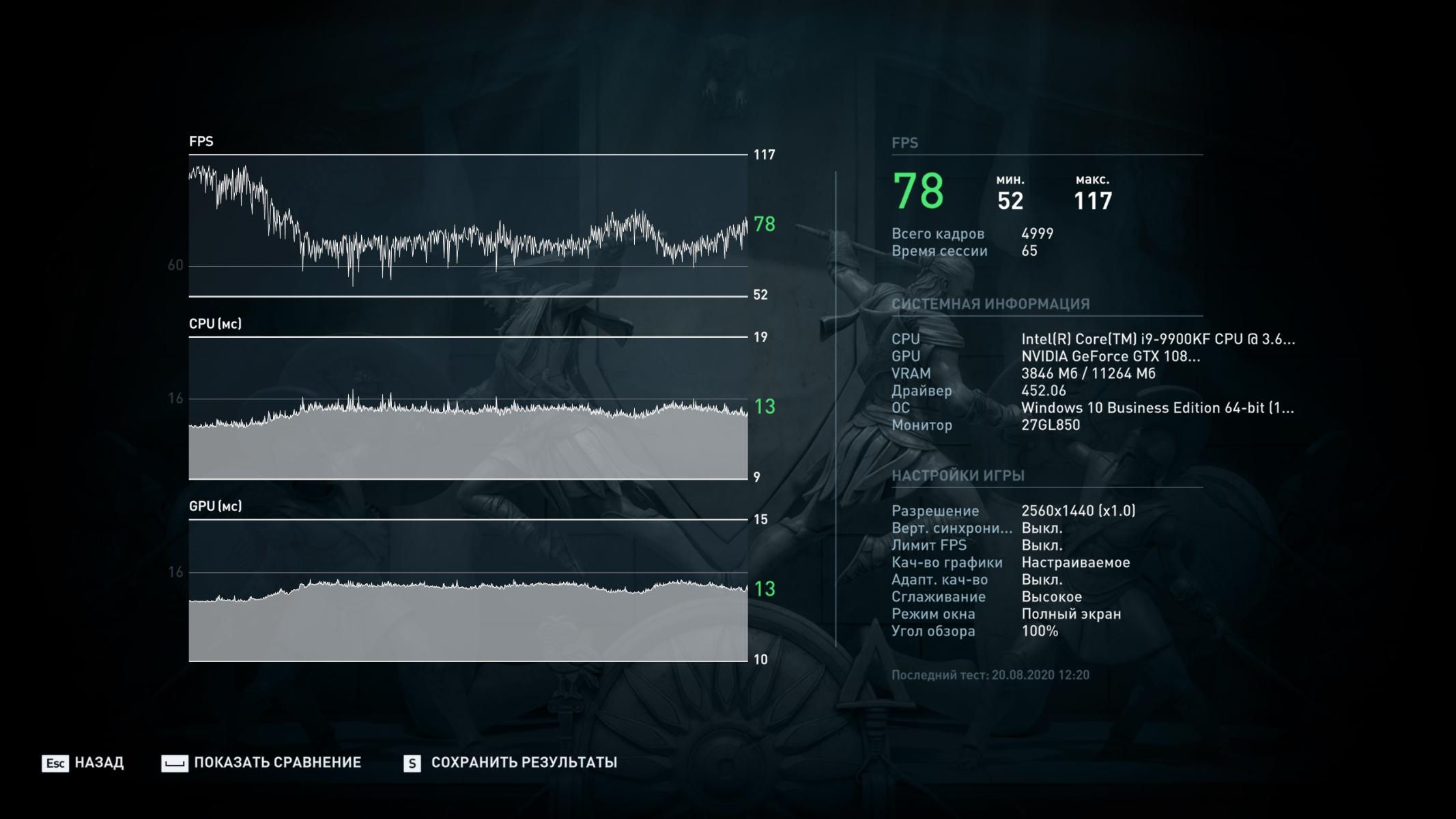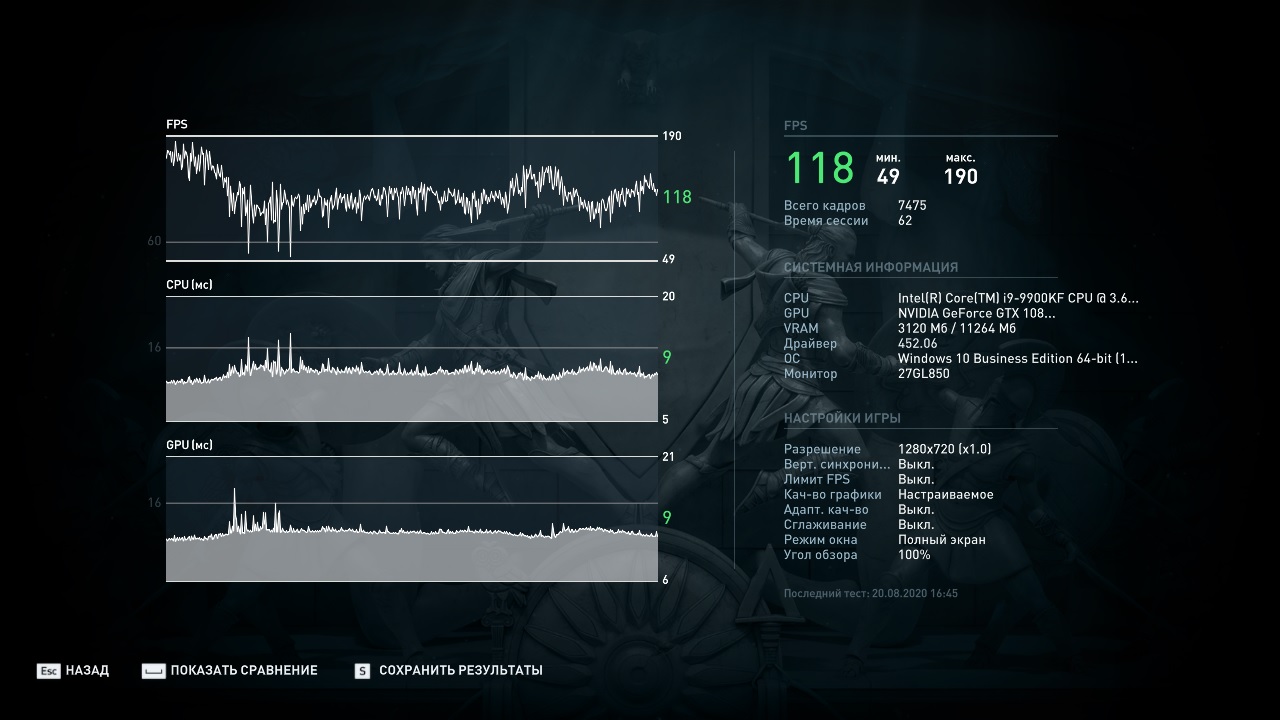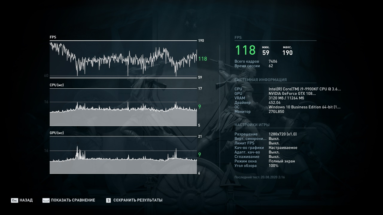 По просьбам читателей провел еще тестирование в реальном режиме в 2К с максимальными настройками и вот, что получилось: