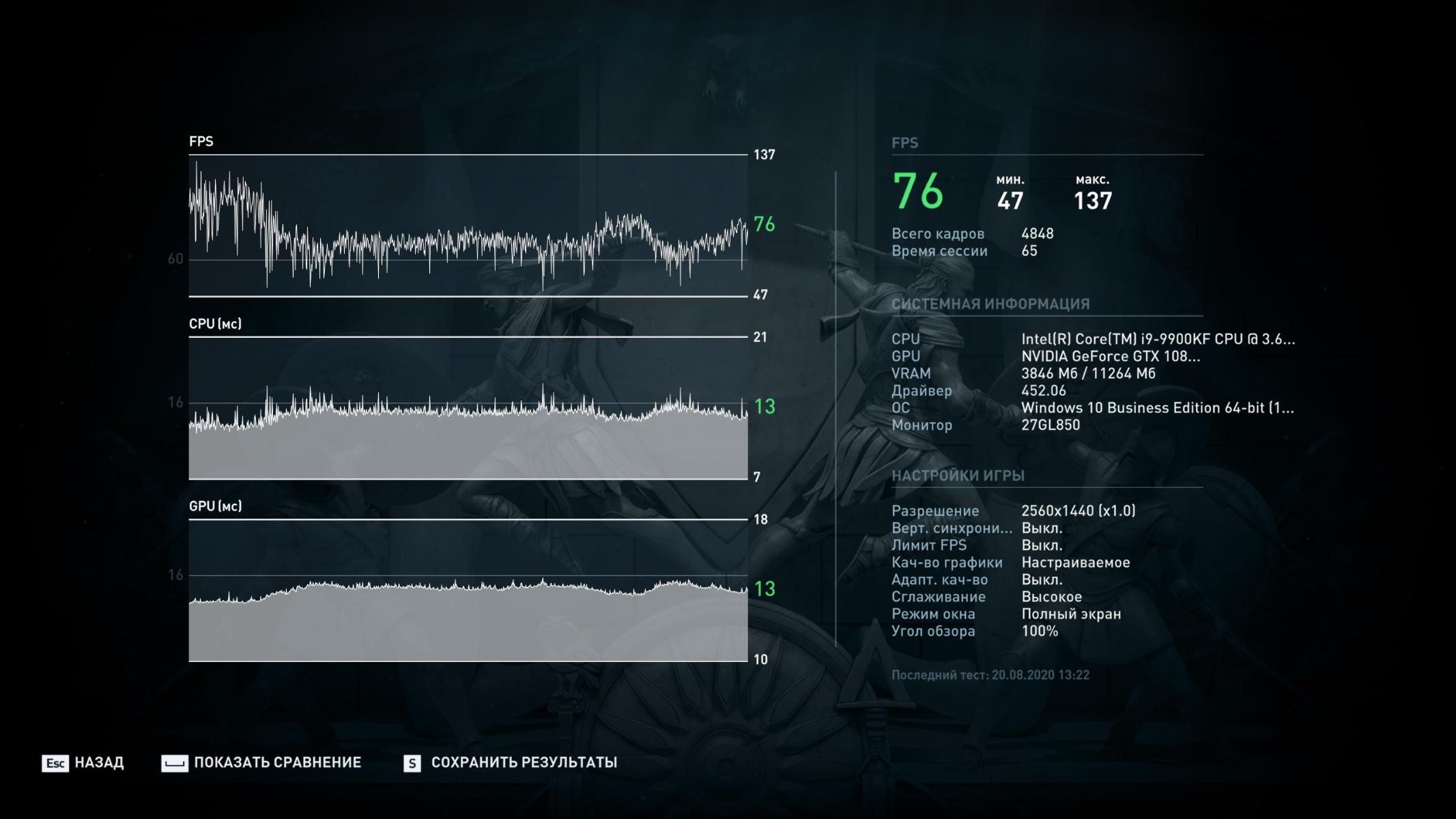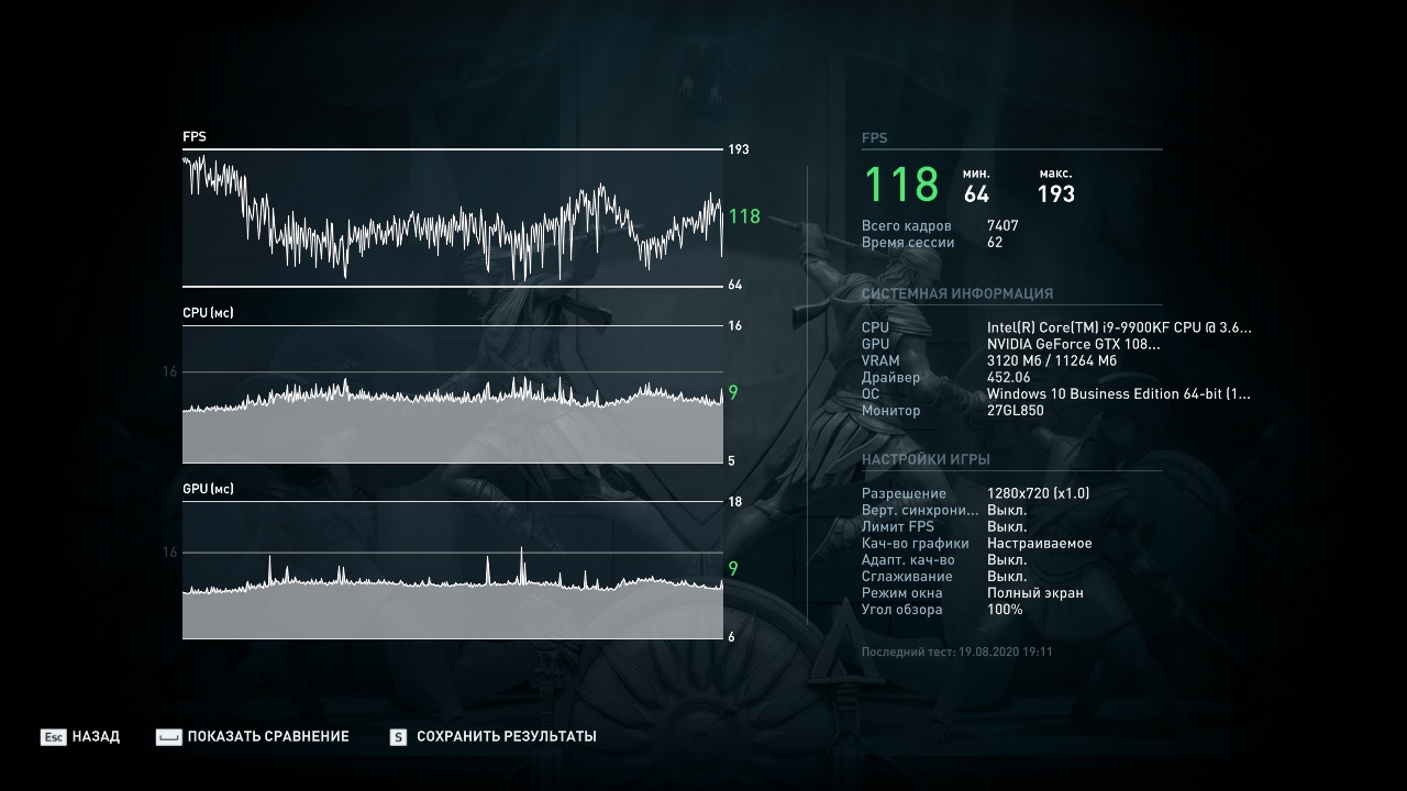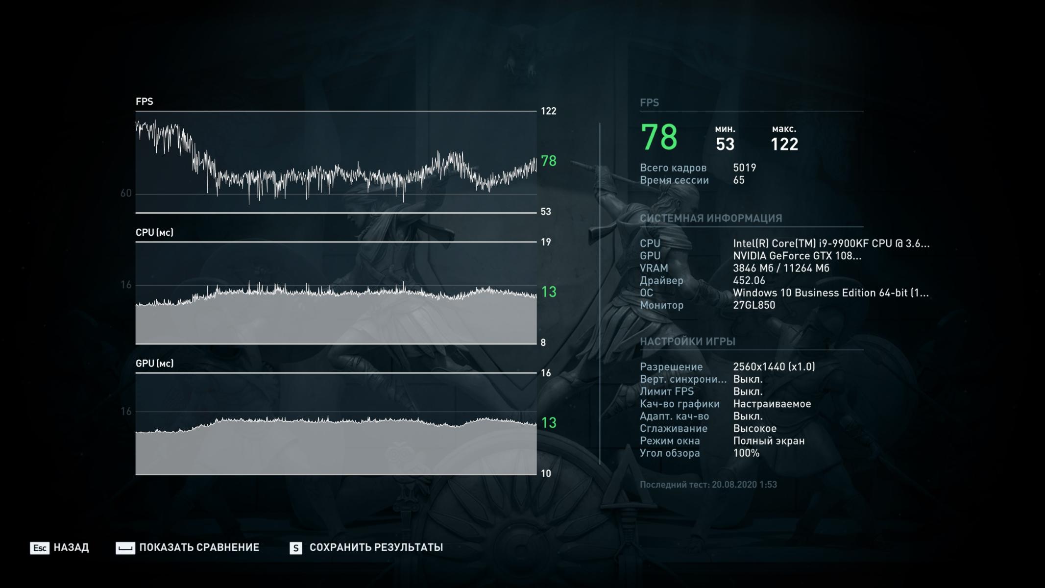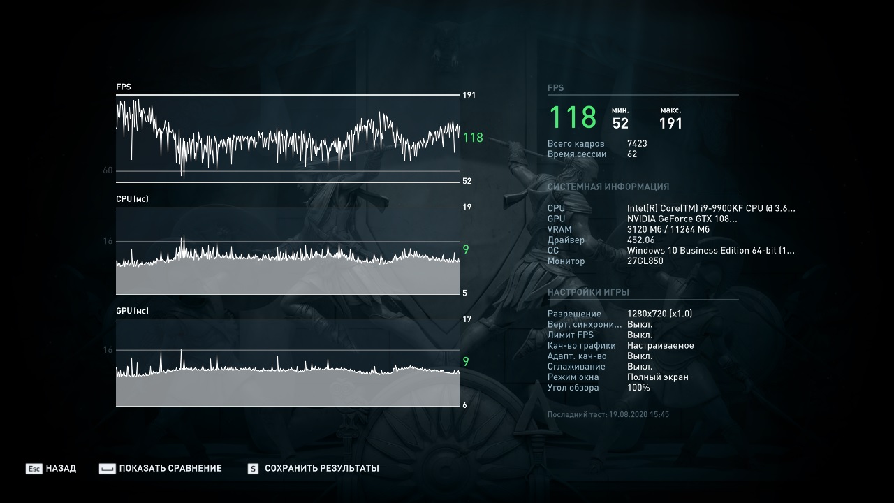 По просьбам читателей провел еще тестирование в реальном режиме в 2К с максимальными настройками и вот, что получилось: