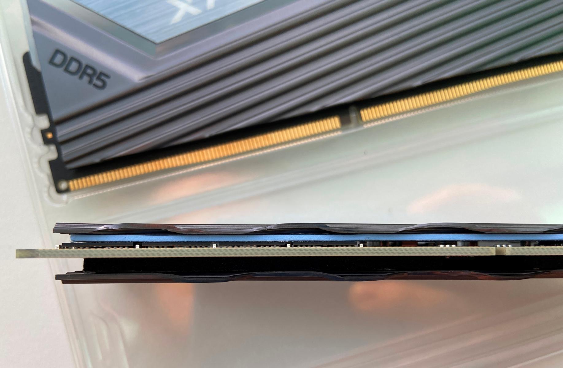 Кроме чипов памяти на DDR5 сильно нагревается PMIC и производители памяти разделились на два лагеря, в первом (Kingston, Corsair, Team Group, Patriot) - ставят термопрокладку на PMIC, во втором - не ставят (Adata, Gskill). Первая мысль по этому поводу была про экономию на спичках и я мог так подумать про Adata, так как в предыдущих обзорах я уже указывал на сомнительные инженерные решения (пластиковый радиатор на чипах с металлической вставкой сверху пластика или поголовное отсутствие термодатчиков на всех модулях DDR4), я их понимаю так как это одни из самых бюджетных модулей на рынке и разница иногда доходит до полутора раз! (если сравнивать комплекты с частотой 6400 от Gskill, Corsair, Team Group), но от Gskill я такого не ожидал и начал искать смысл. Поиски привели меня к даташитам на различные PMIC, где фигурировали рабочие температуры в диапазонах от -40 до 95/110/140 градусов да и статья с igorslab натолкнула на вывод, что к моменту когда PMIC нагреется до критической температуры - чипы памяти уже будут пировать в Вальхалле (максимальная рабочая температура чипов по даташитам 85-95 градусов). Инженеры Adata и Gskill видимо считают, что нет необходимости охлаждать PMIC и что важнее забирать тепло с чипов памяти, что мы и проверим на практике дальше в статье.