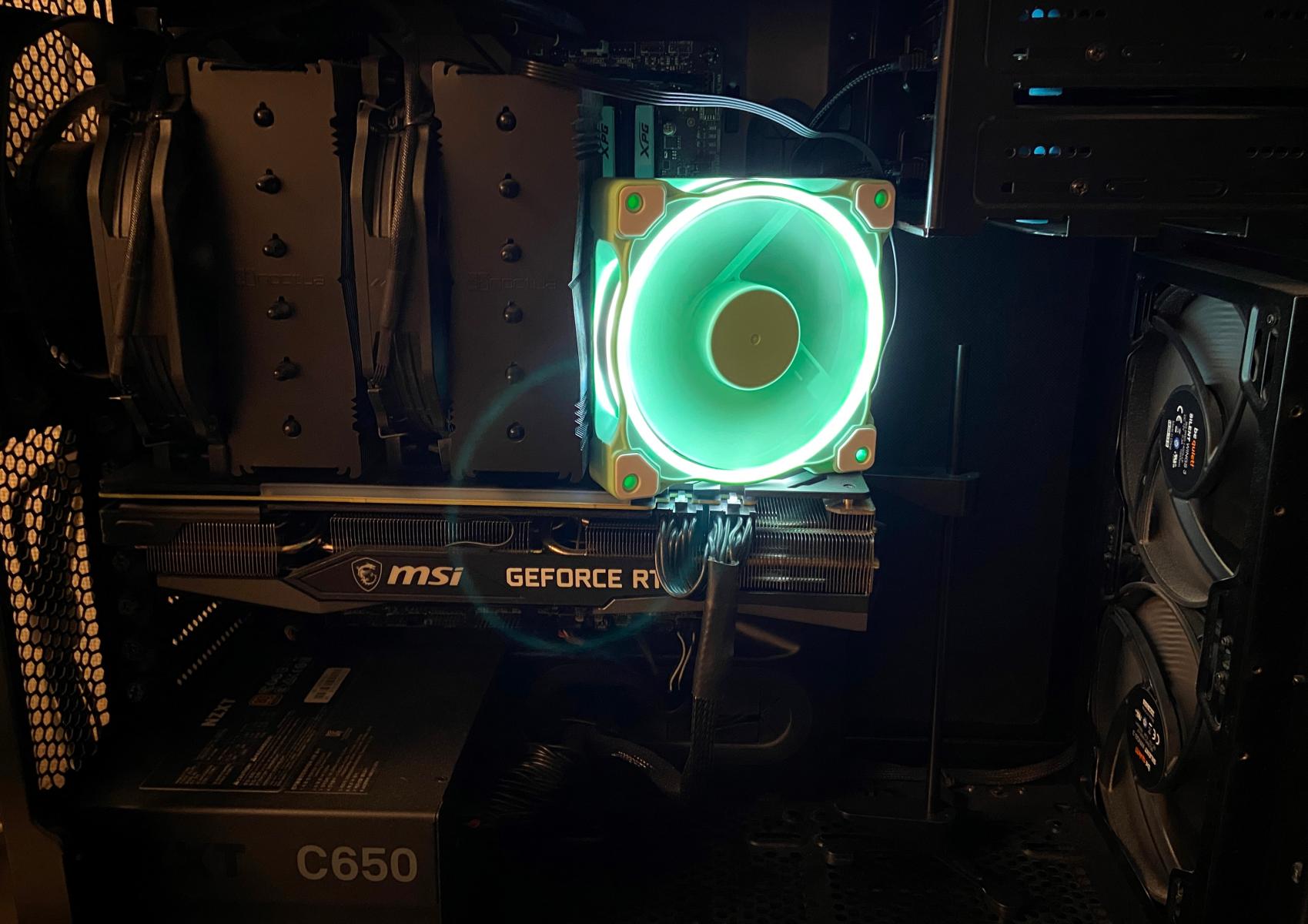 Уточнение - во время тестирования боковая стенка ПК была закрыта, фото сделано во время установки вентилятора.
