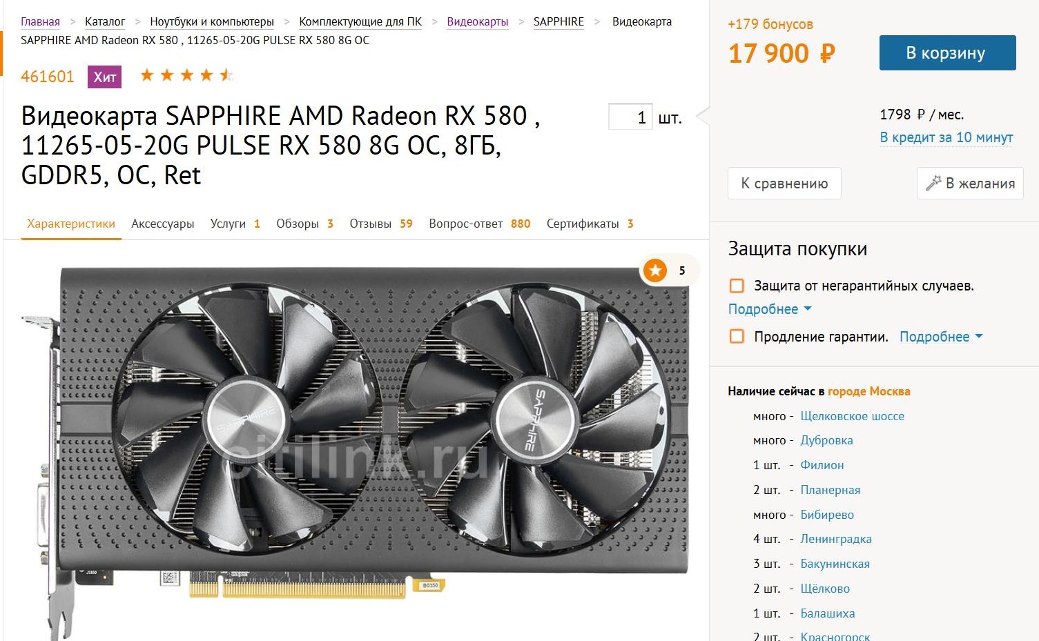 На первом месте - SAPPHIRE AMD Radeon RX 580 PULSE.
