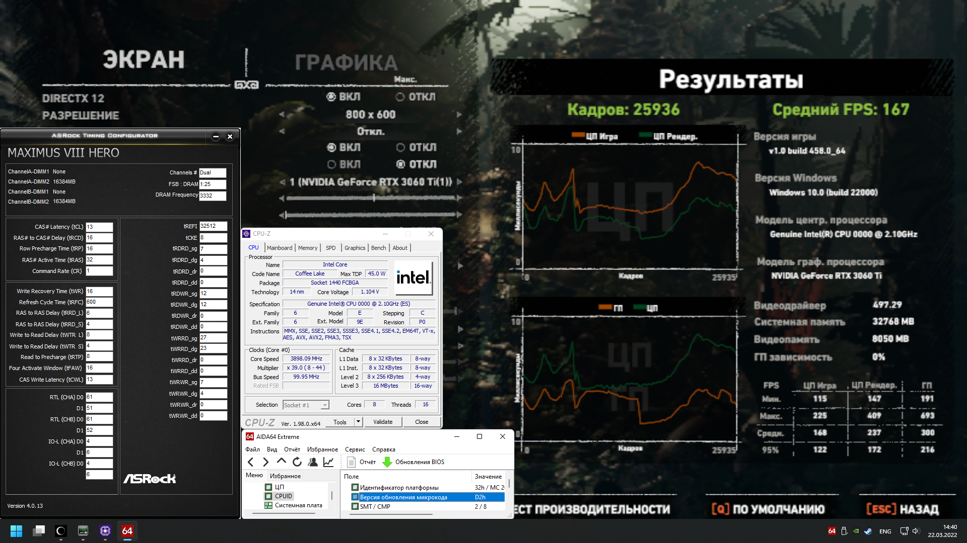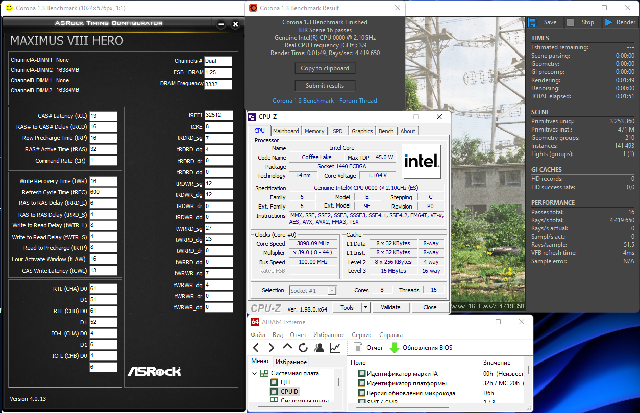 Тестирование проводится с максимальной для микрокодов частотой ОЗУ. Для удачных микрокодов это 3333 MHz, для неудачного – 3100 MHz.