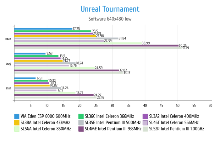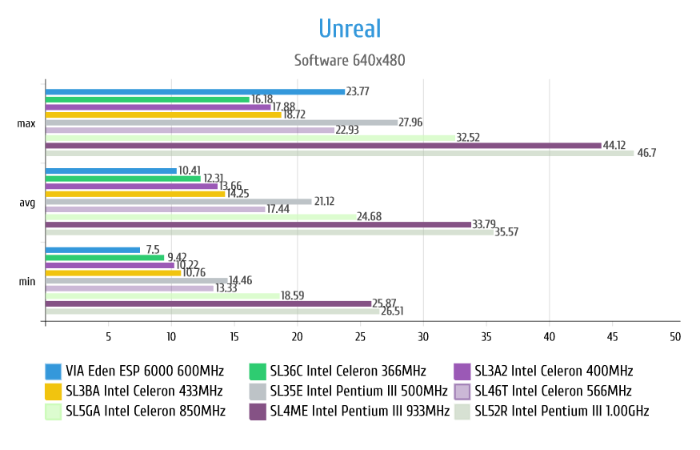 Картина не меняется, есть у VIA Eden всплеск по максимальному FPS на минимальных настройках, но толку от этого в целом нет. Я даже не поленился и протестировал ещё раз, результат такой же.