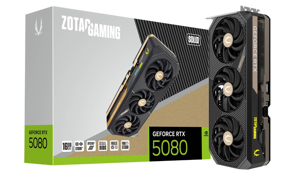 Компания Zotac сообщила, что даже RTX 5080 SOLID OC будет иметь ту же скорость памяти 30 гигабит в секунду (Гб/с), что и ее аналог INFINITY, с частотой графического процессора увеличенной до 2,625 гигагерц. Кроме того, карты будут поставляться со стандартными 16 ГБ памяти стандарта DDR7 и 256-битной шиной памяти.